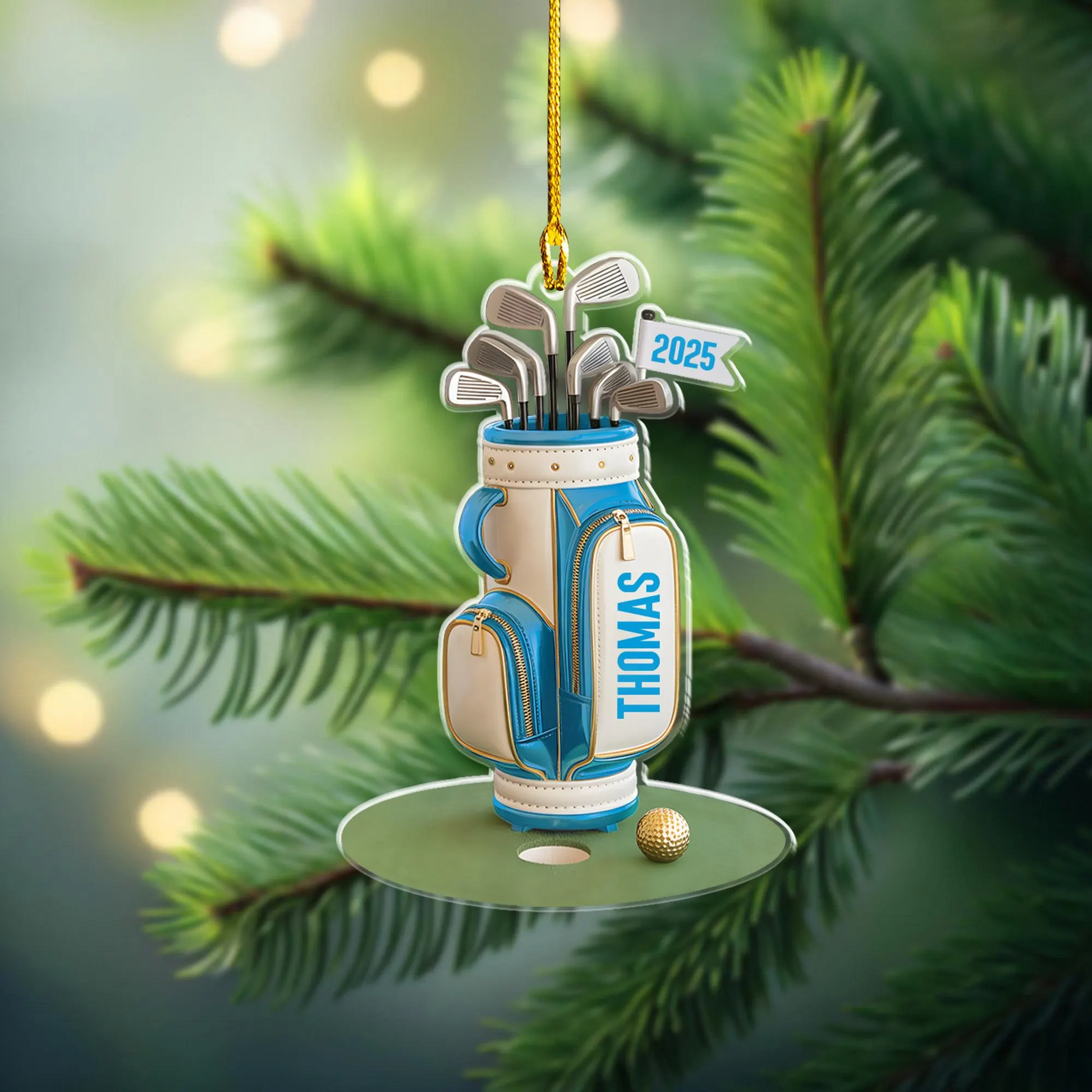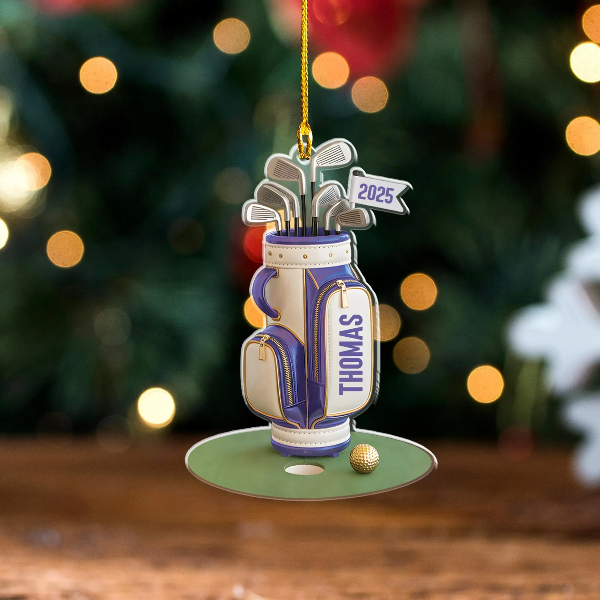 Custom Name Golf Backpack Christmas Acrylic Ornament, Golf Ornaments For Christmas Tree, Golf Lover Gift