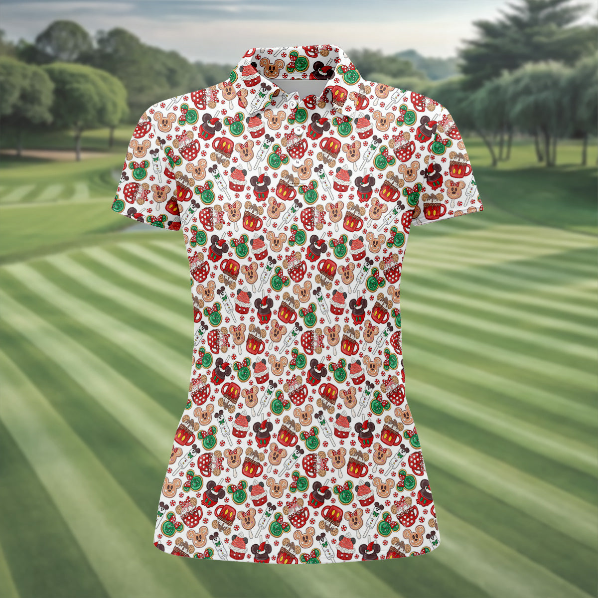 Cute Christmas Dessert Pattern Women's Golf Shirts, Ladies Golf Polos, Christmas Golf Shirt