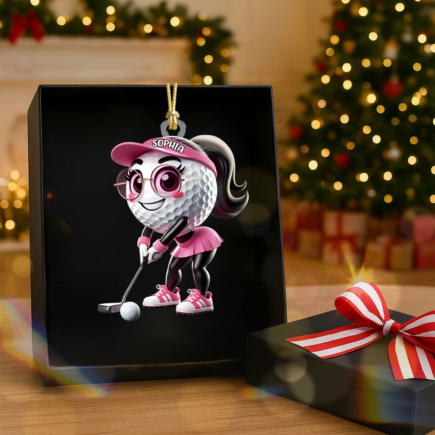 Cute Golf Ball Female Golf Acrylic Ornament, Golf Xmas Ornaments, Golf Christmas Gifts