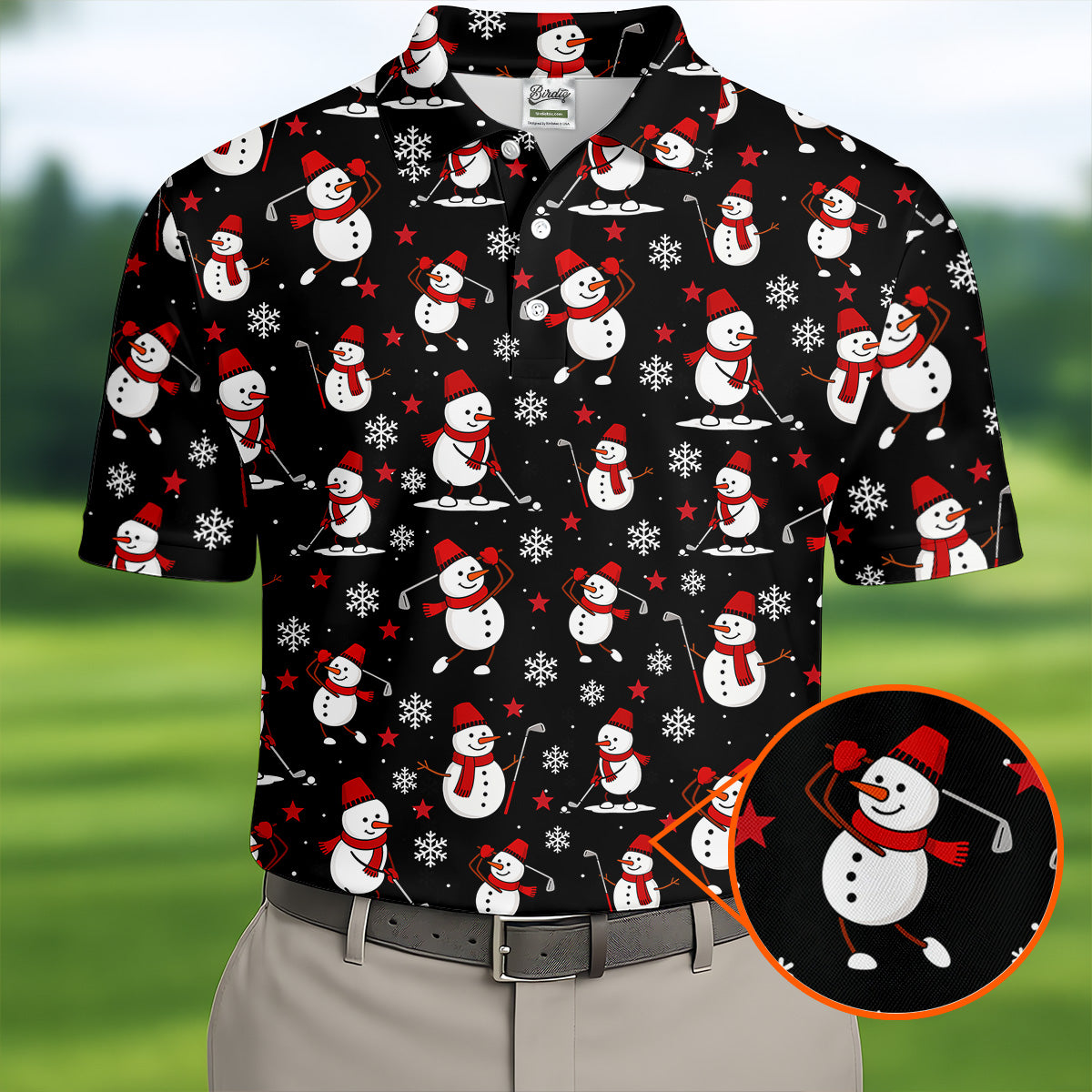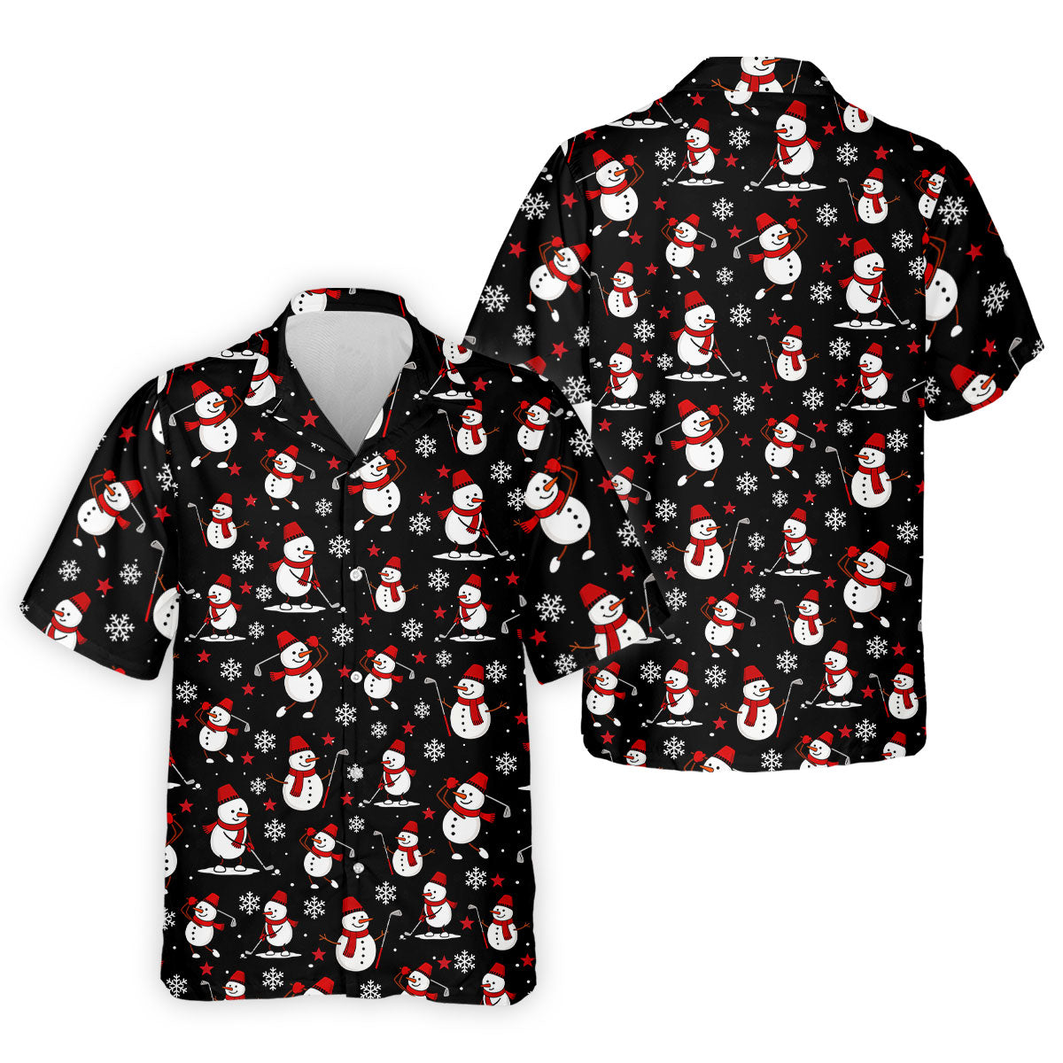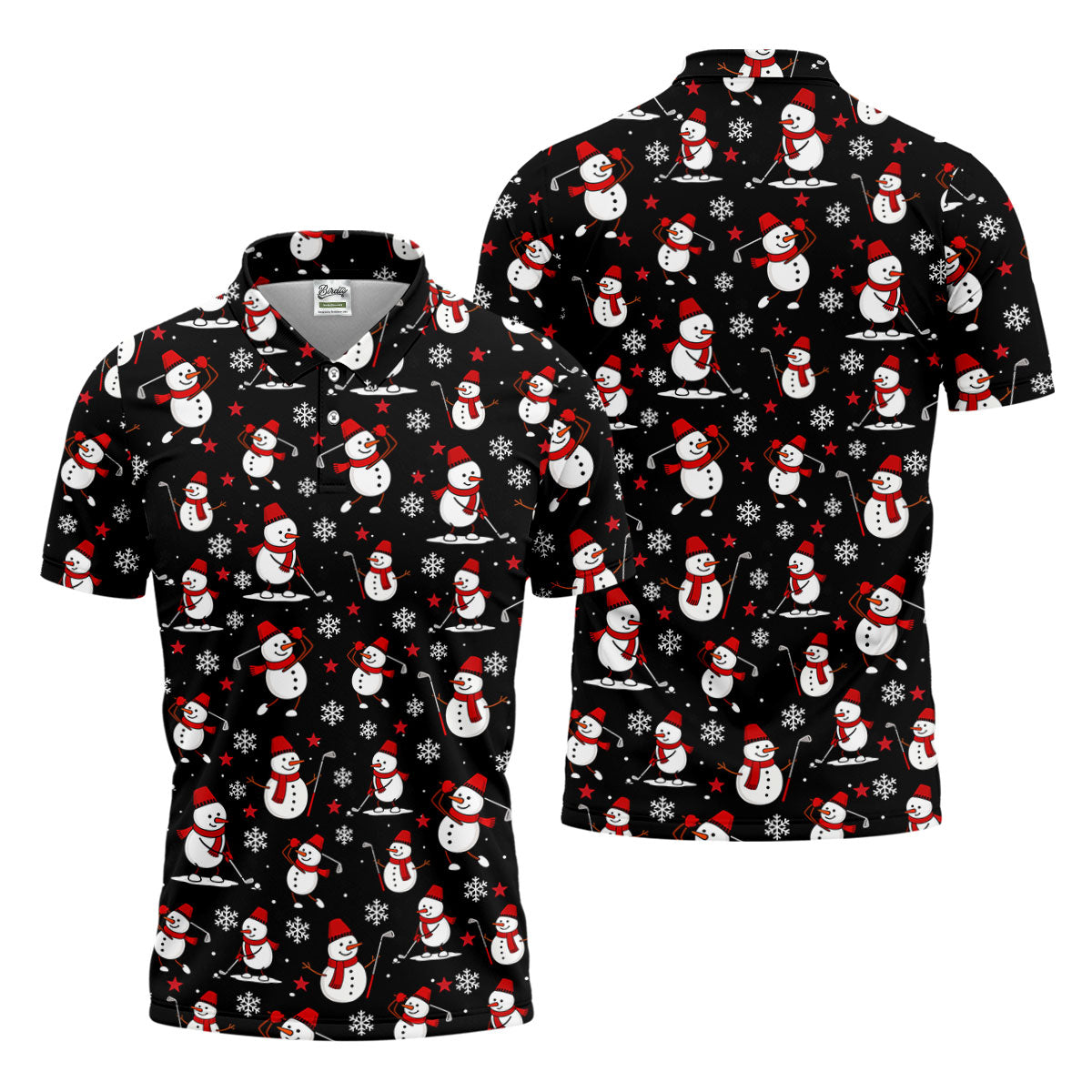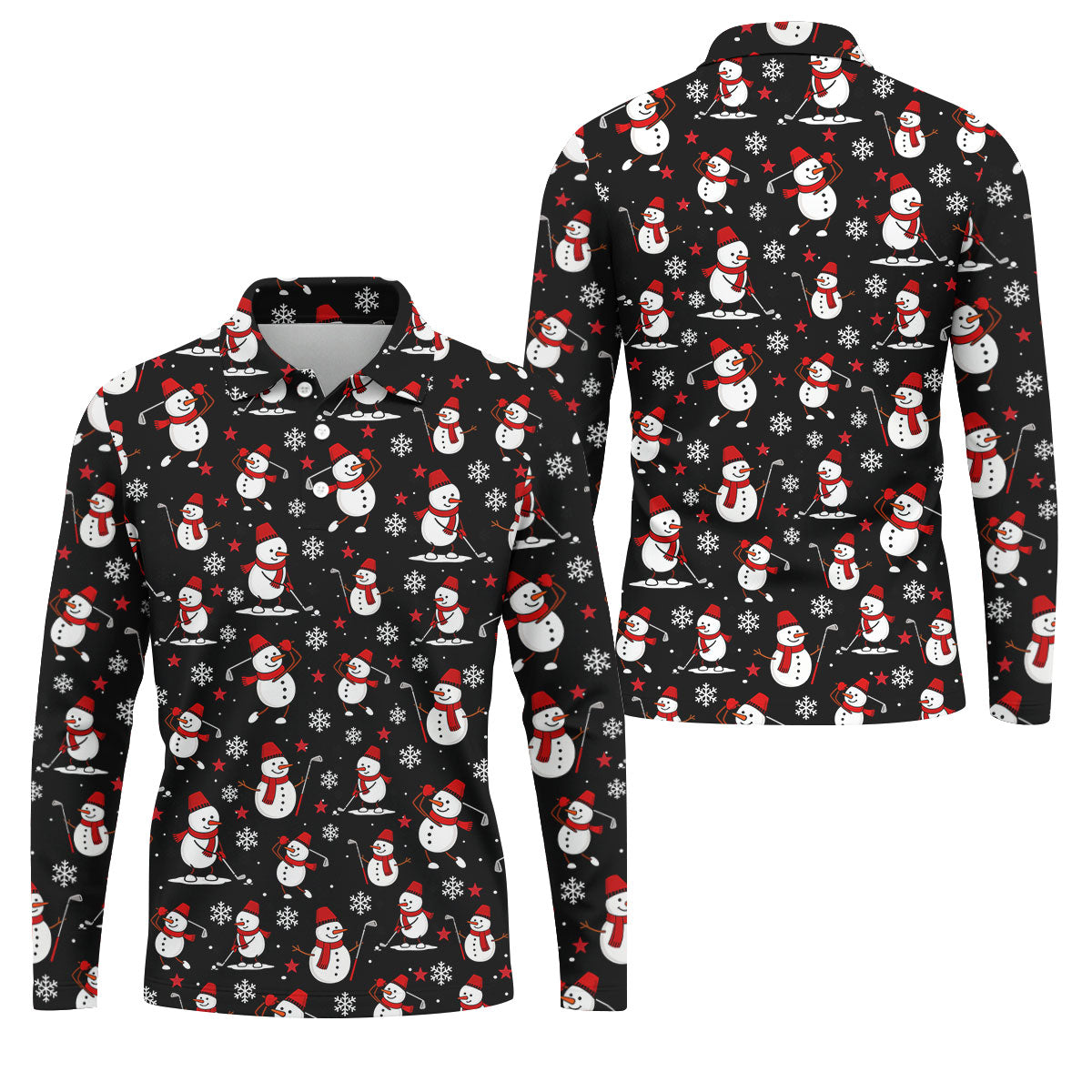 Cute Snowman Golf Pose Black Golf Shirt, Christmas Golf Shirt, Golf Shirts For Men, Golf Gift For Men