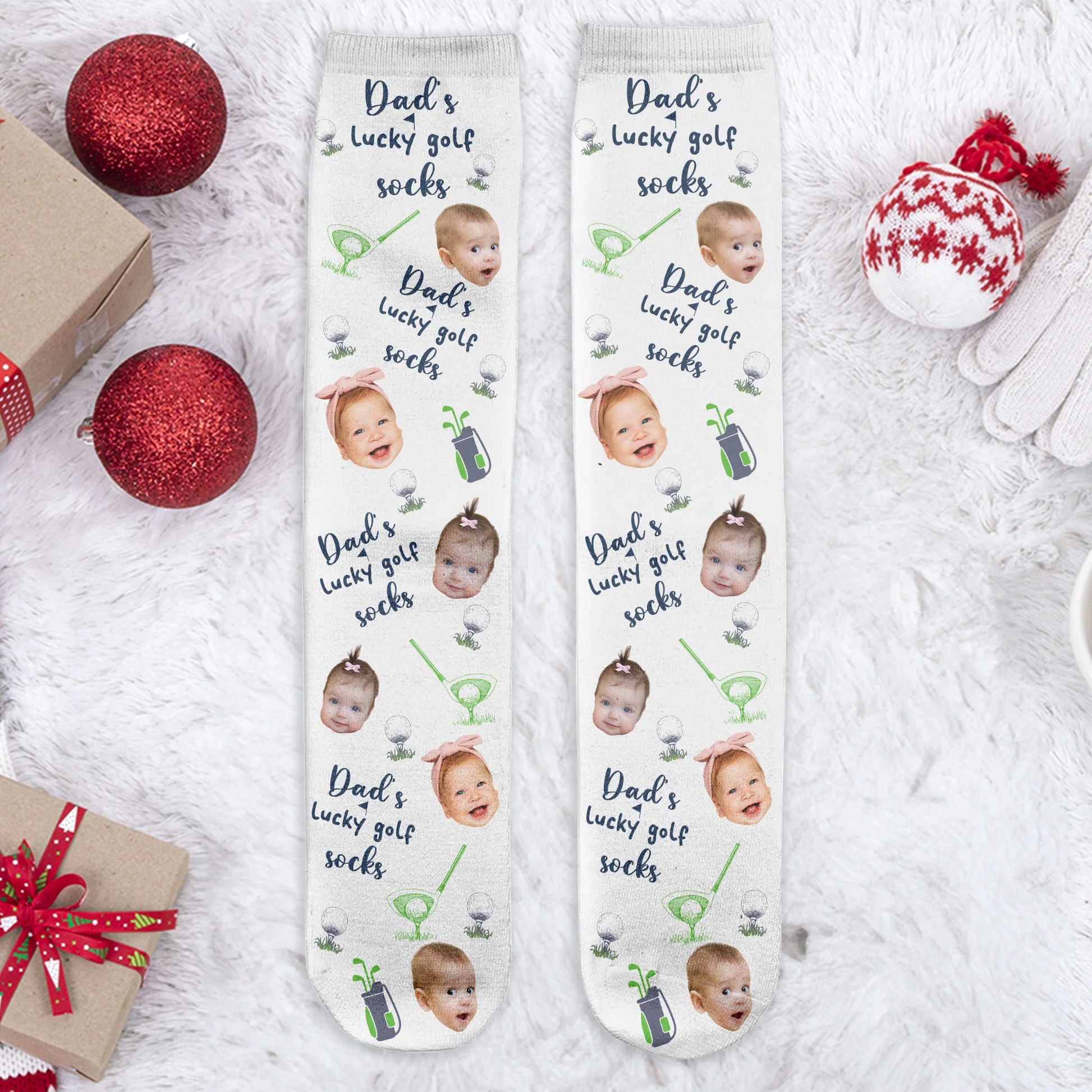 Dad's Lucky Golf Socks, Custom Face Socks, Christmas Golf Gift, Golf Gift For Men