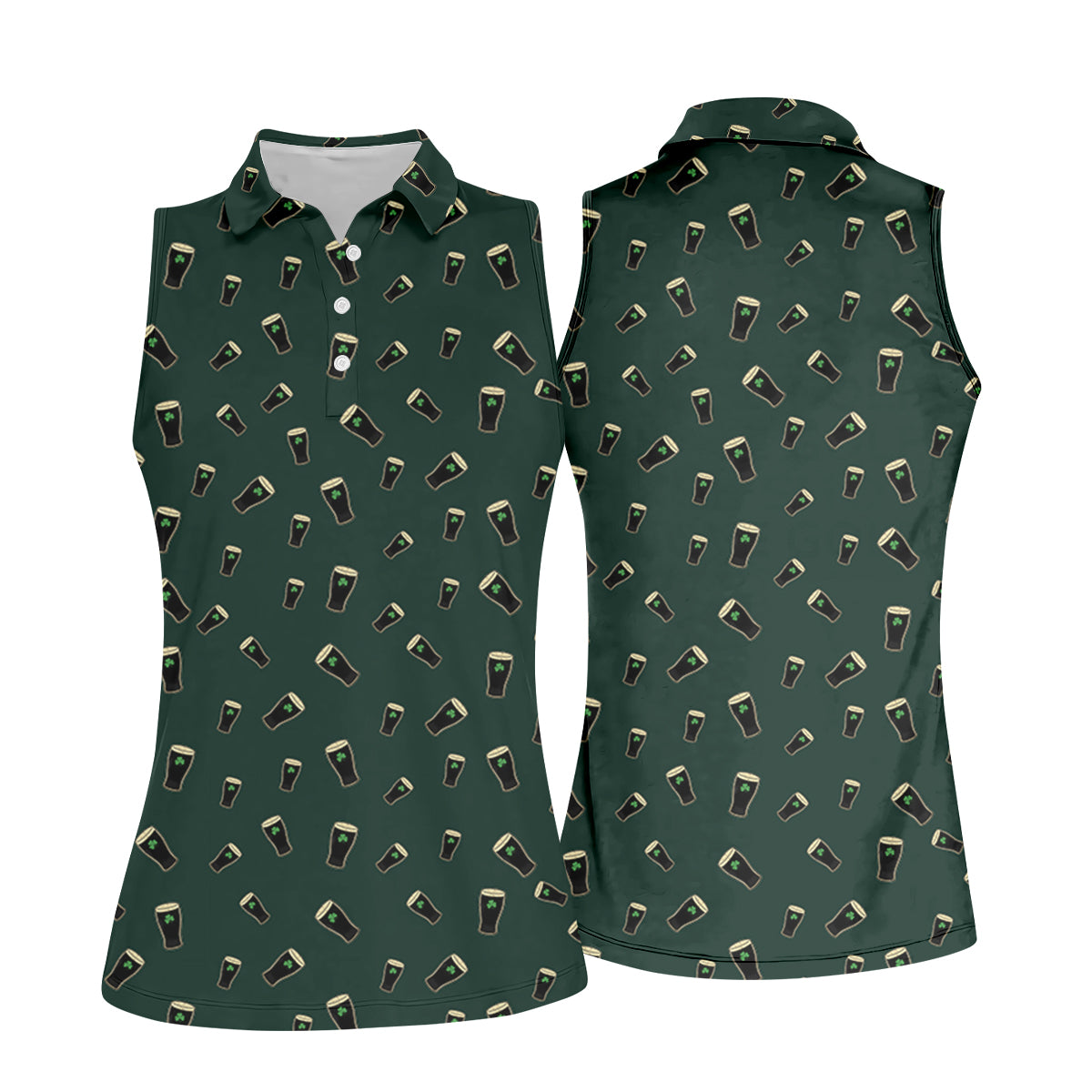 Dark Stout Beer St Patrick's Day Green Shamrock Golf Shirt, Ladies Golf Tops, Golf Shirt For Women