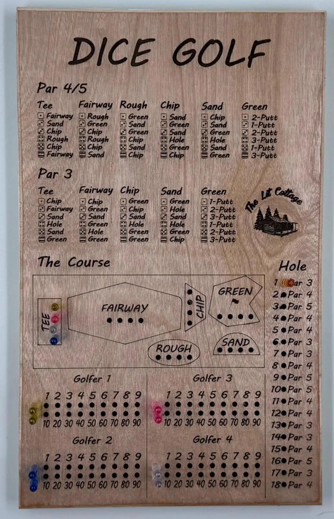 Dice Golf Wood Tracker, Golf Bucket List, Gift For Golfers