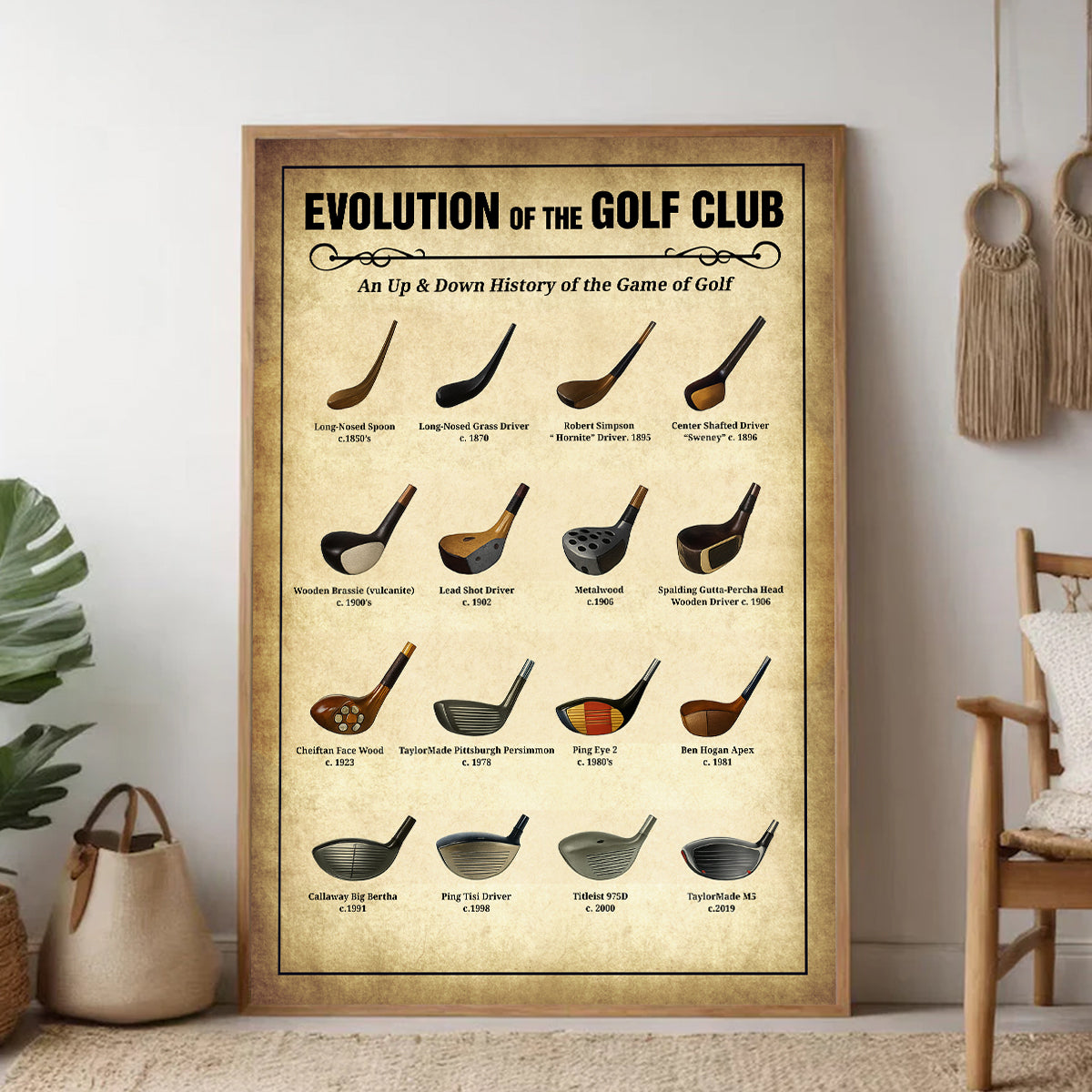 Evolution Of The Golf Club Wall Canvas Print, Golf Canvas Wall Art, Golf Wall Art, Gift For Golfer
