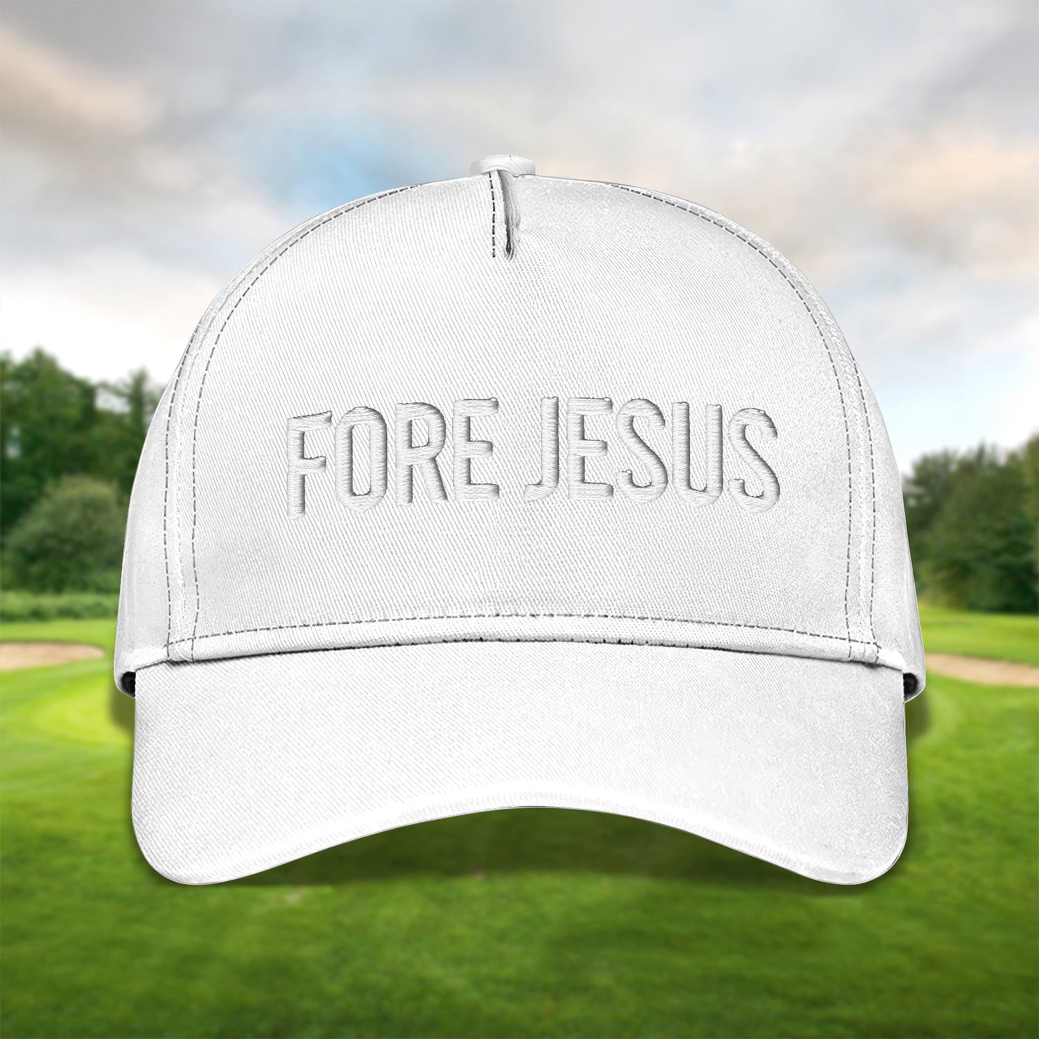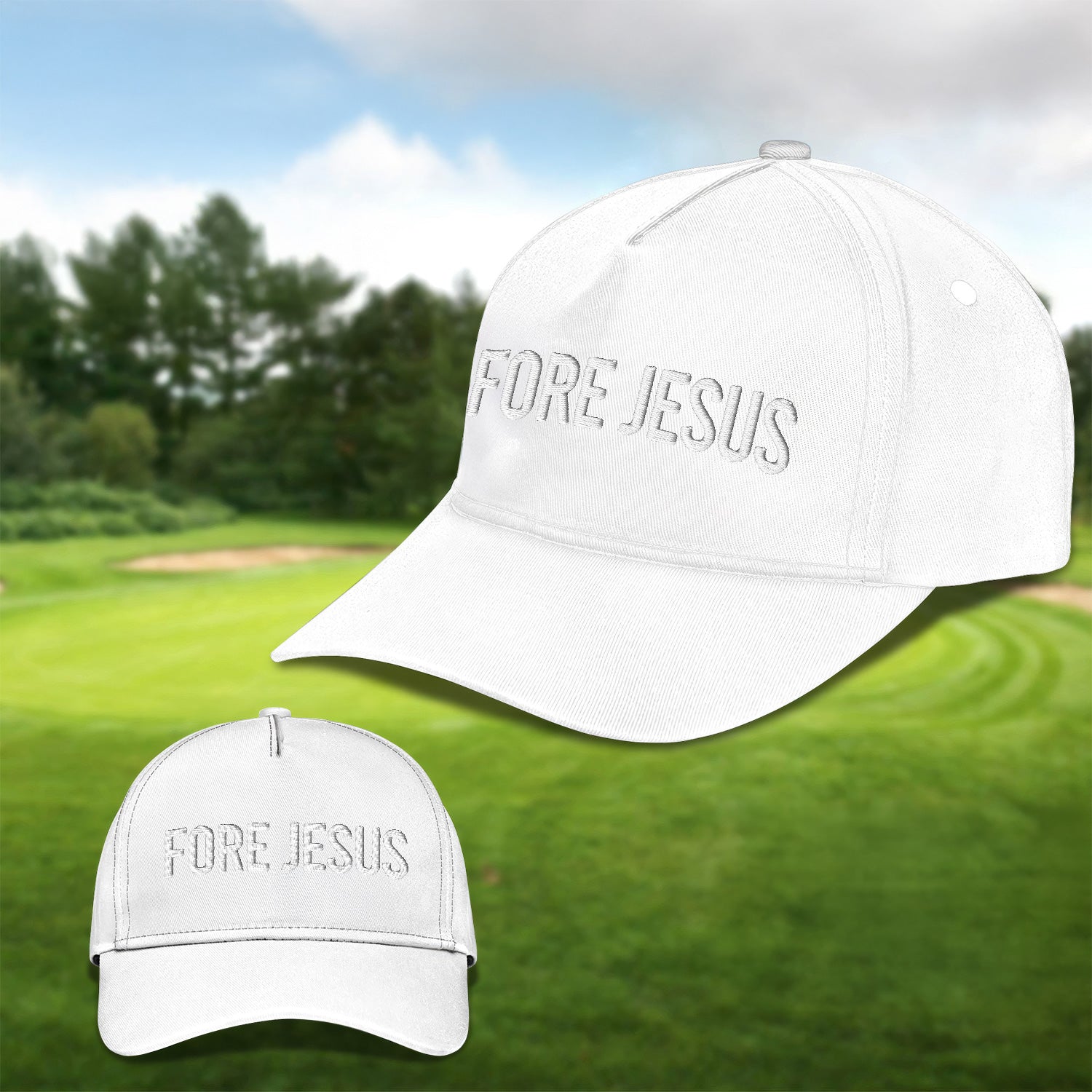 Fore Jesus White Embroidered Baseball Cap, Funny Dad Hat, Christmas Golf Gift