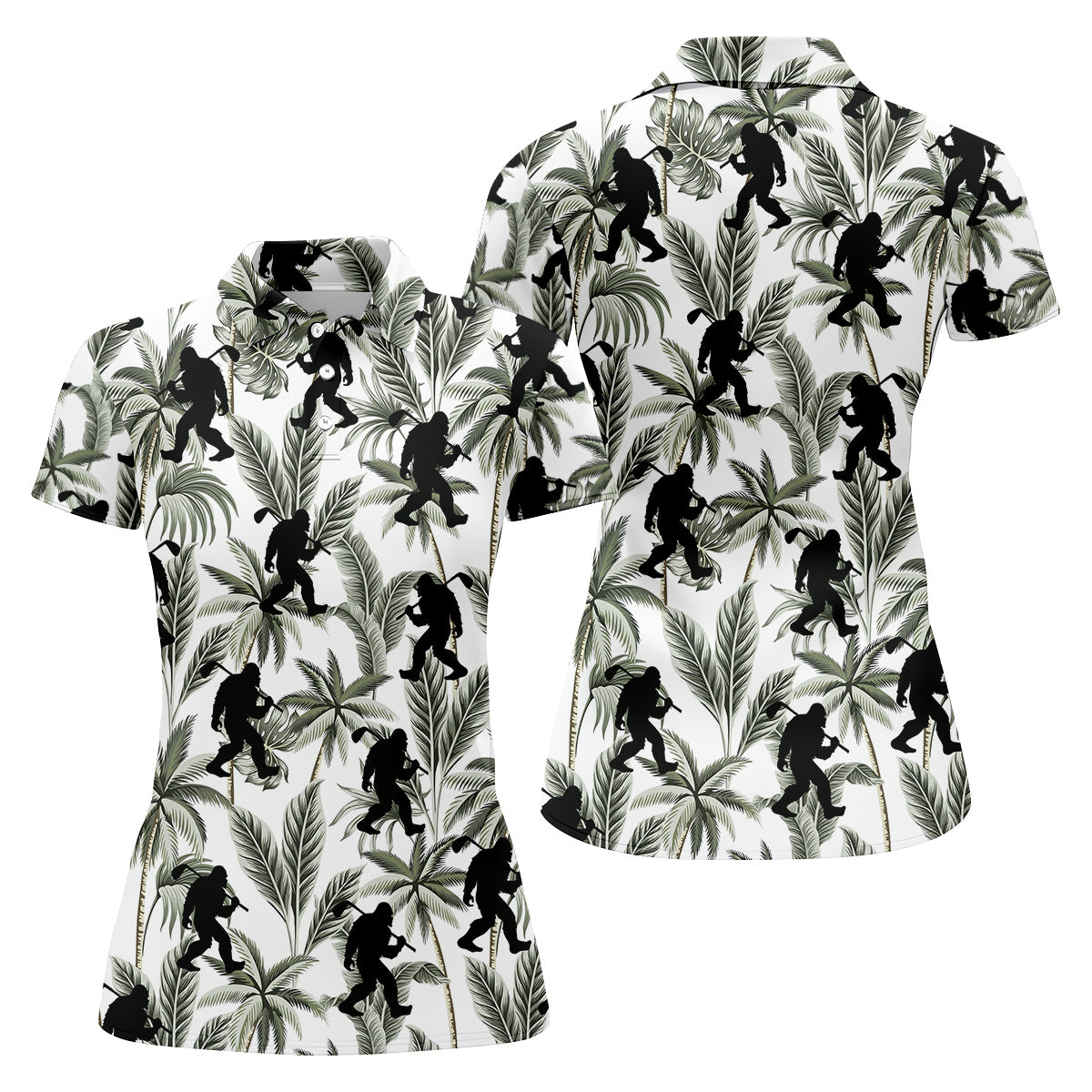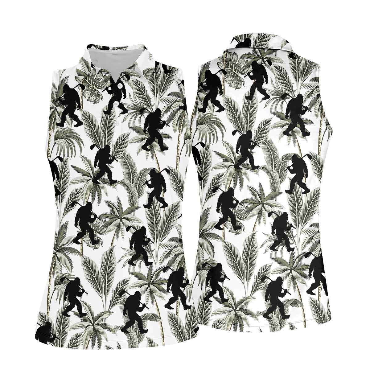 Funny Bigfoot Tropical Palm Leaves Golf Shirt For Women, Ladies Sleeveless Polo, Ladies Golf Shirts