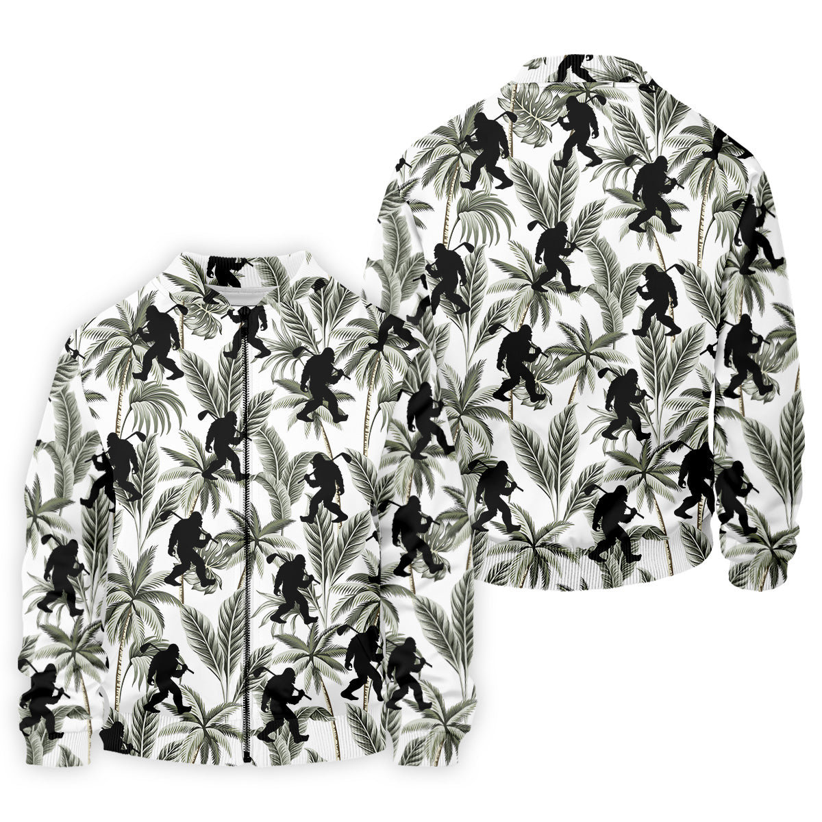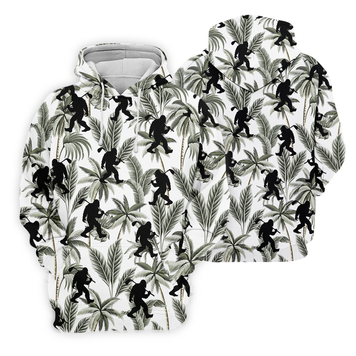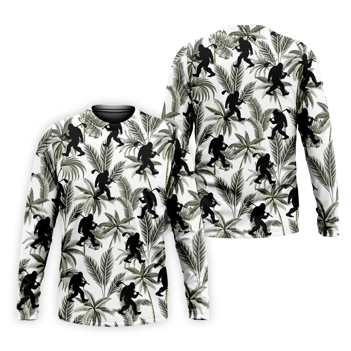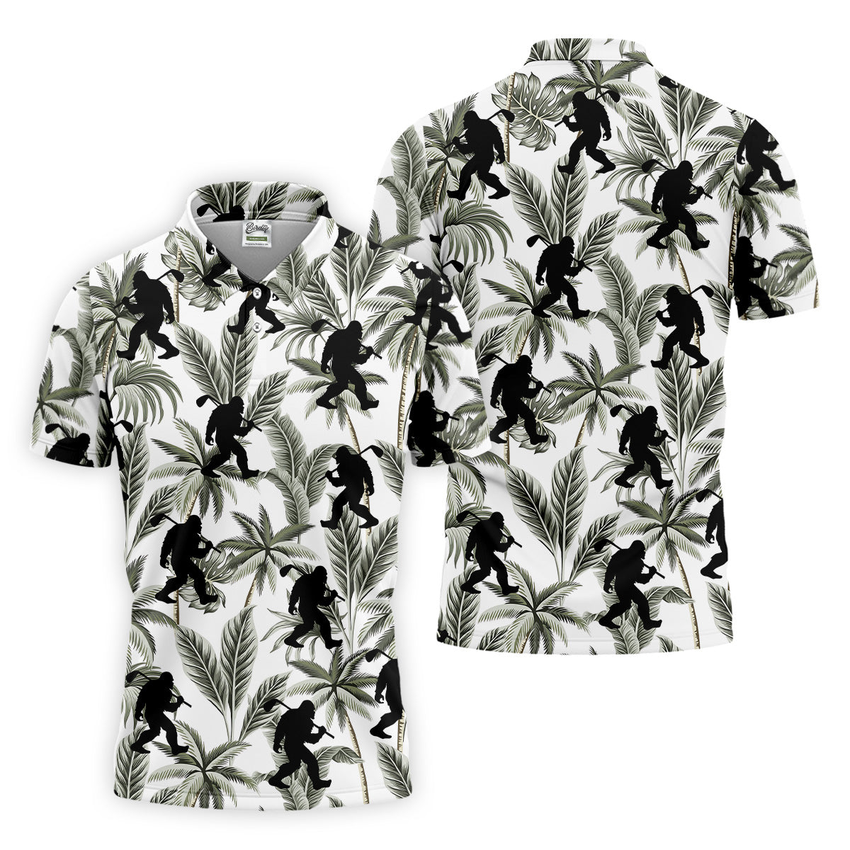 Funny Bigfoot Tropical Palm Leaves Golf Tops For Men, Custom Golf Polos, Golf Gift For Men