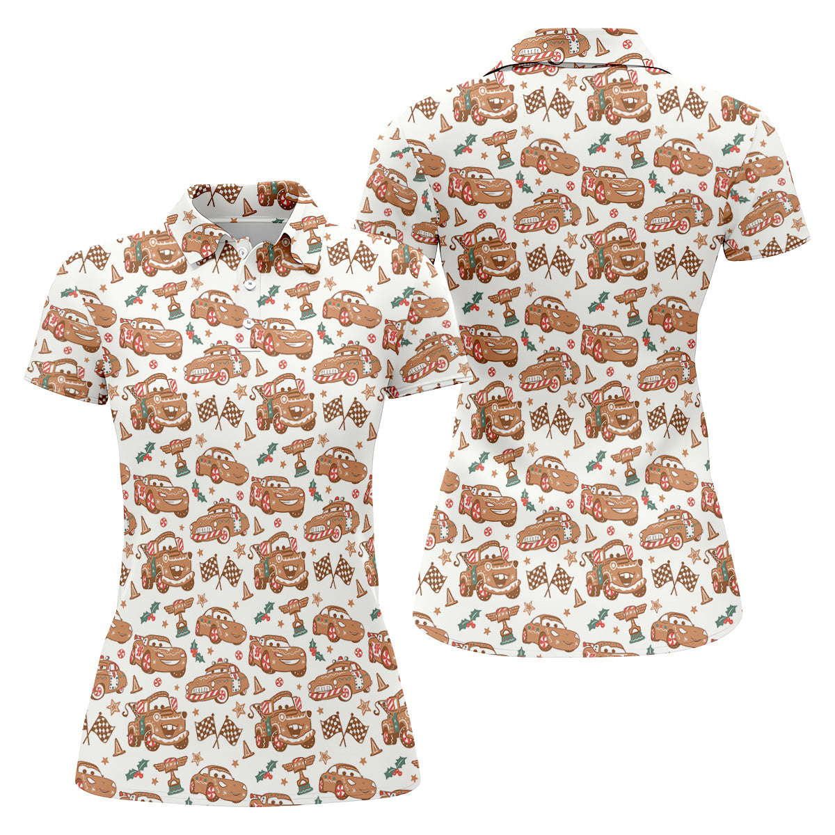 Funny Christmas Animation Car Women's Golf Shirts, Ladies Golf Tops, Golf Gifts For Women, Christmas Golf Shirt