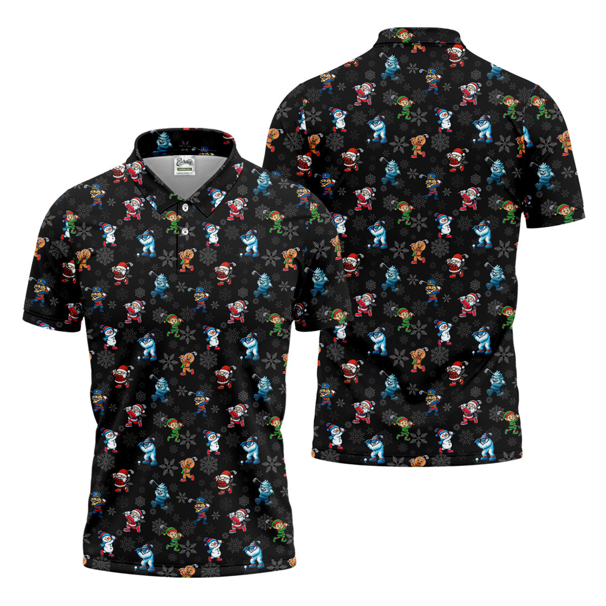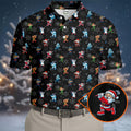 Funny Christmas Characters Golf Pose Black Golf Shirt, Christmas Golf Shirt, Polo Shirts For Men