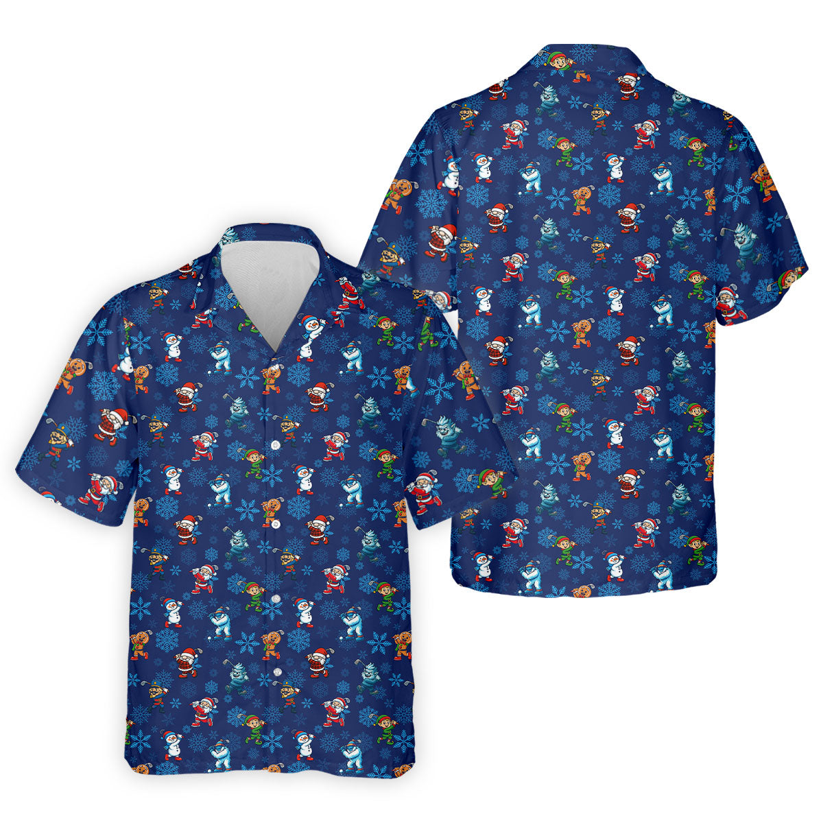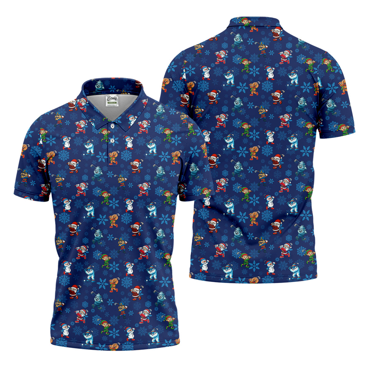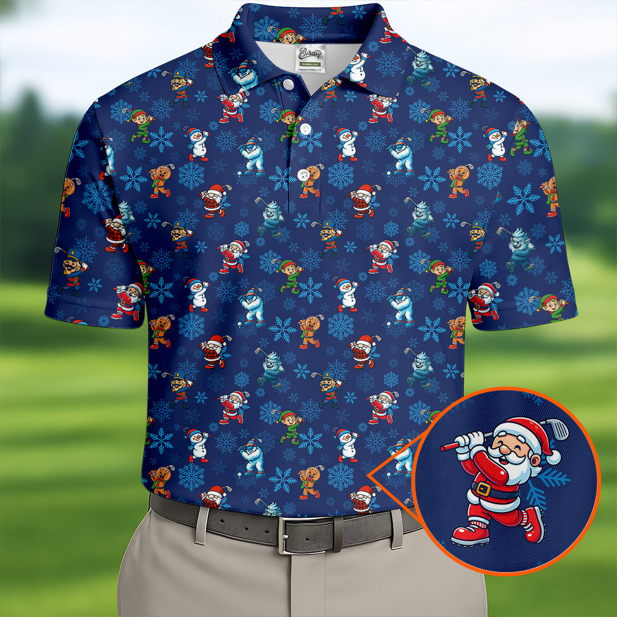 Funny Christmas Characters Golf Pose Navy Golf Shirt, Christmas Golf Shirt, Polo Shirts For Men