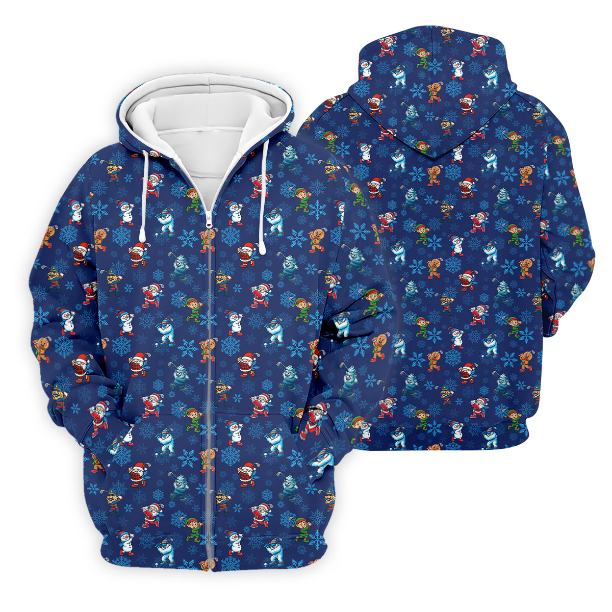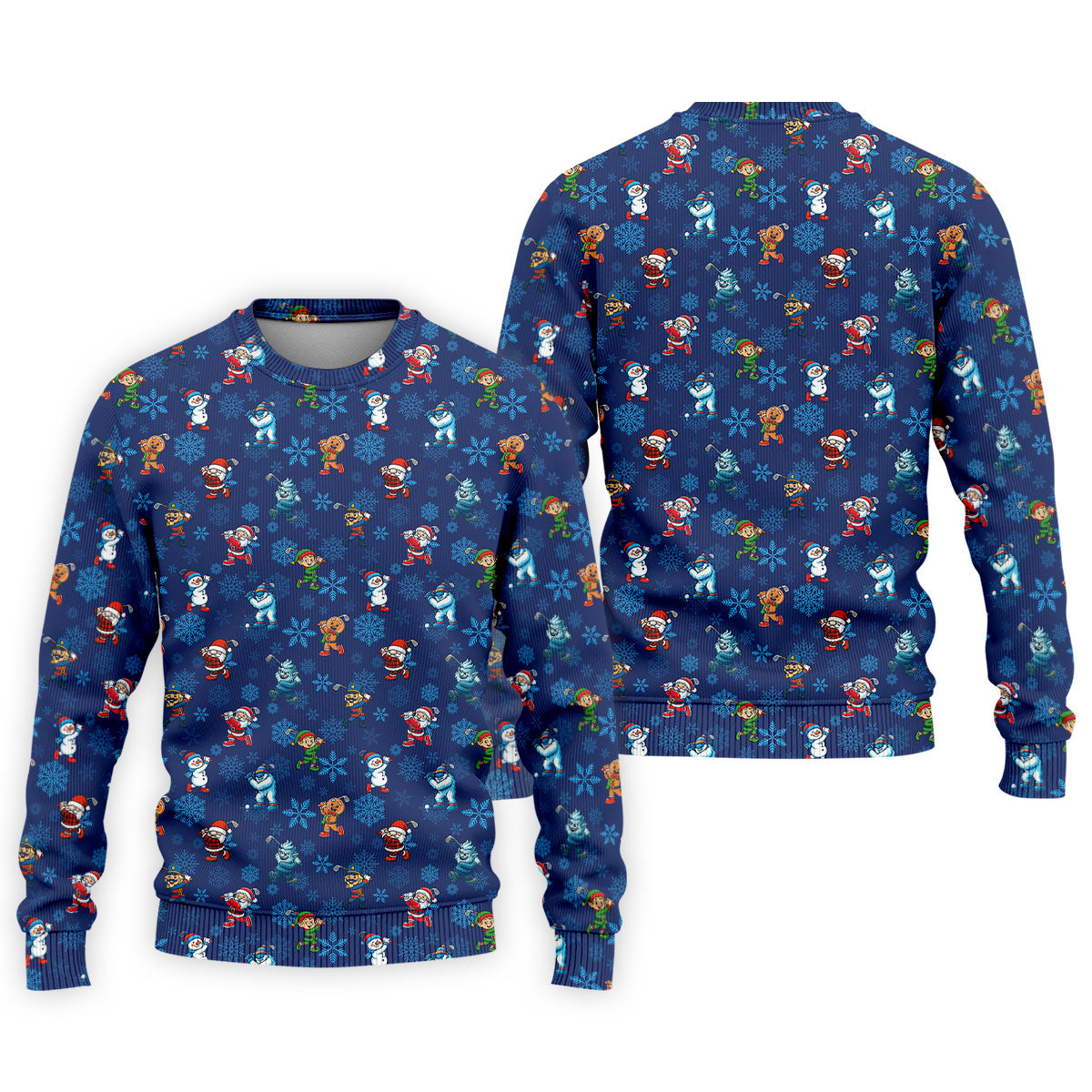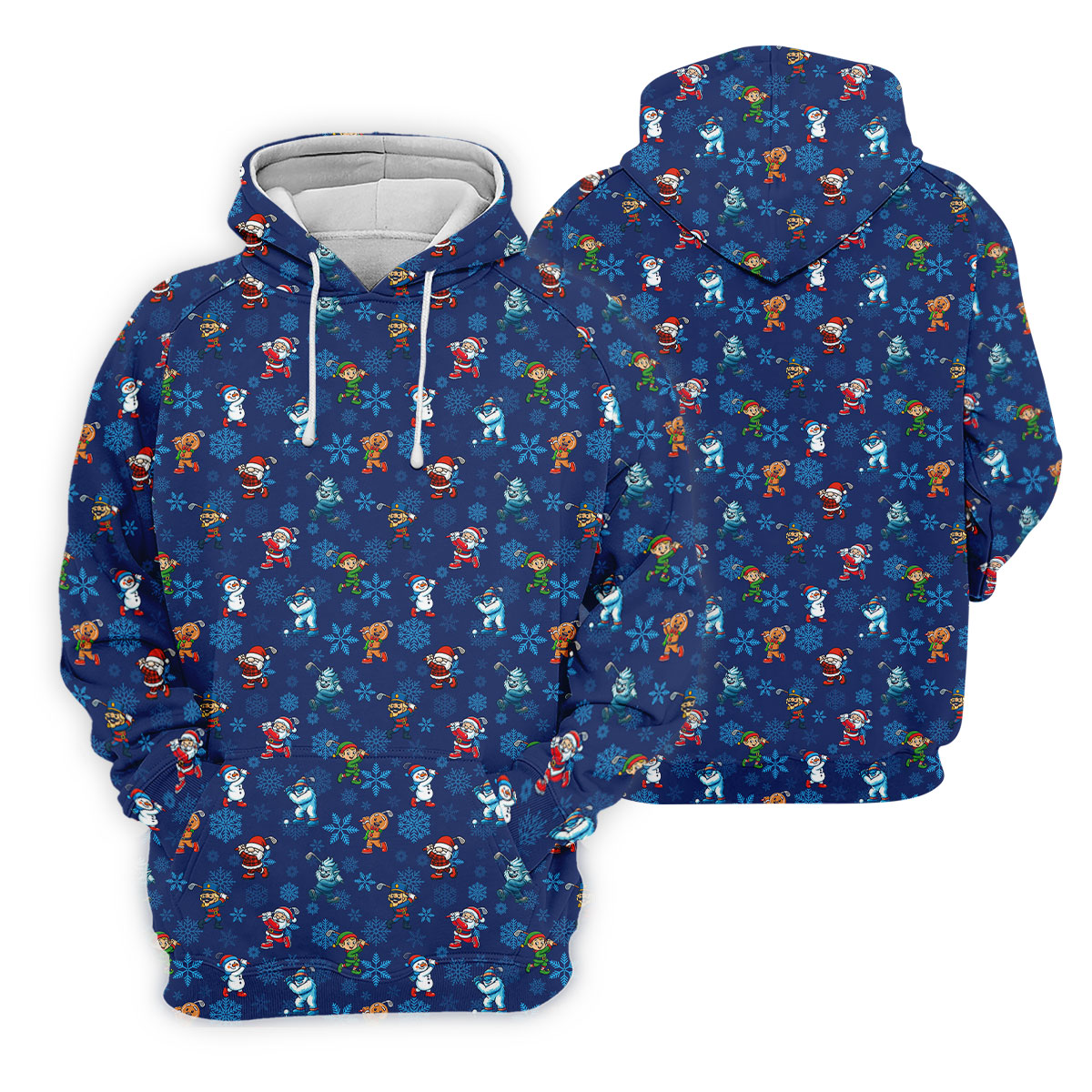 Funny Christmas Characters Golf Pose Navy Golf Shirt, Christmas Golf Shirt, Polo Shirts For Men