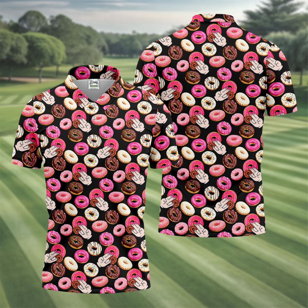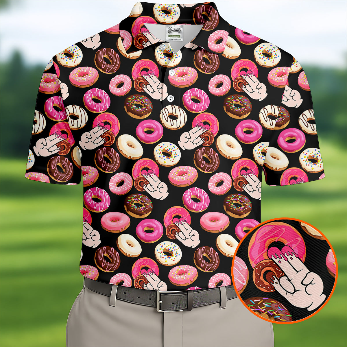 Funny Donut Adult Humor Black And Pink Fun Golf Shirts For Men, Valentines Golf Gift, Polo Shirts For Men