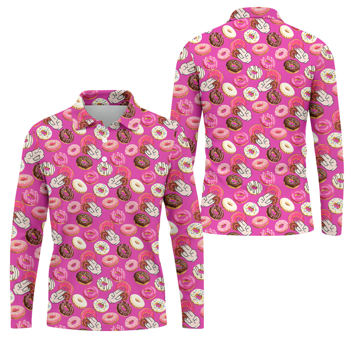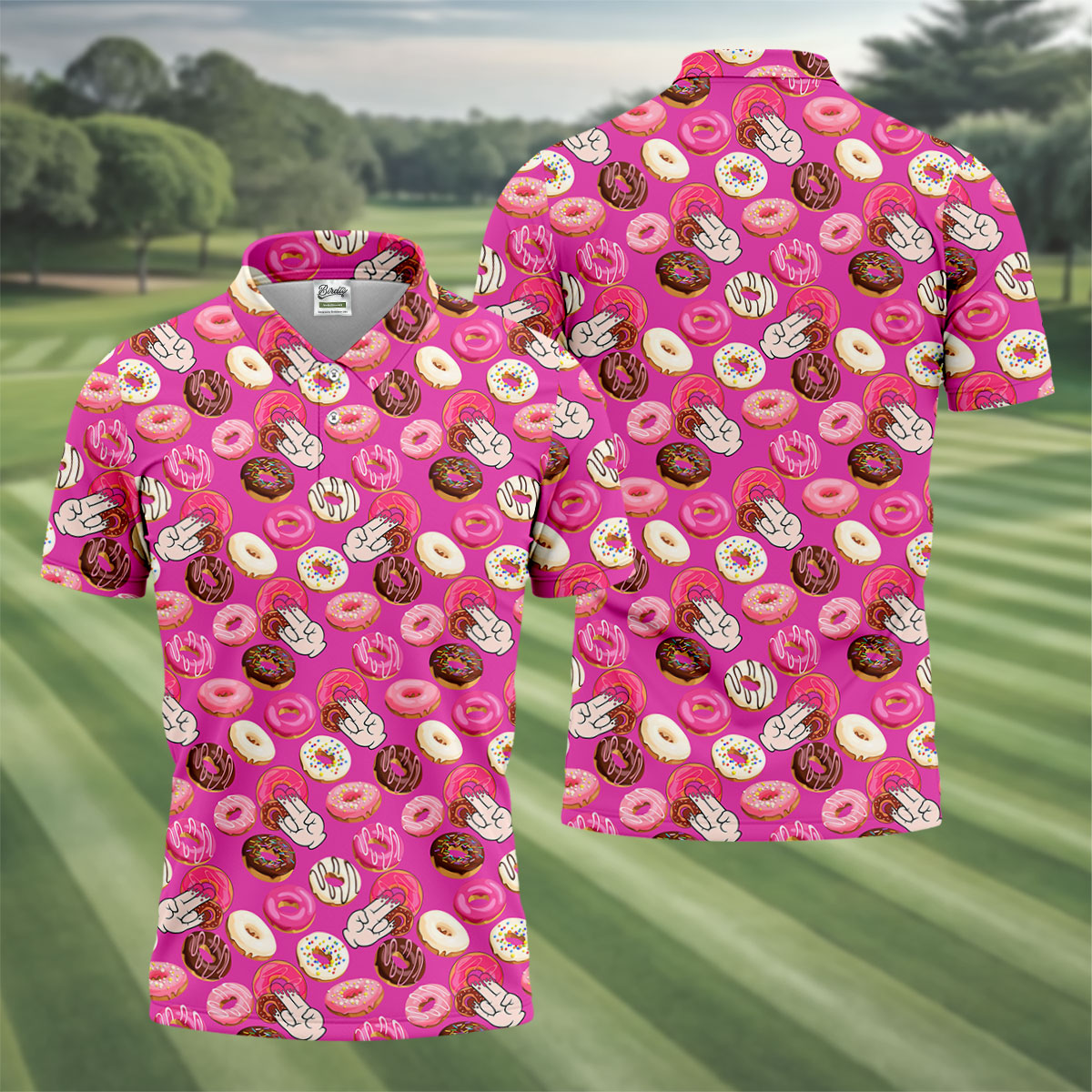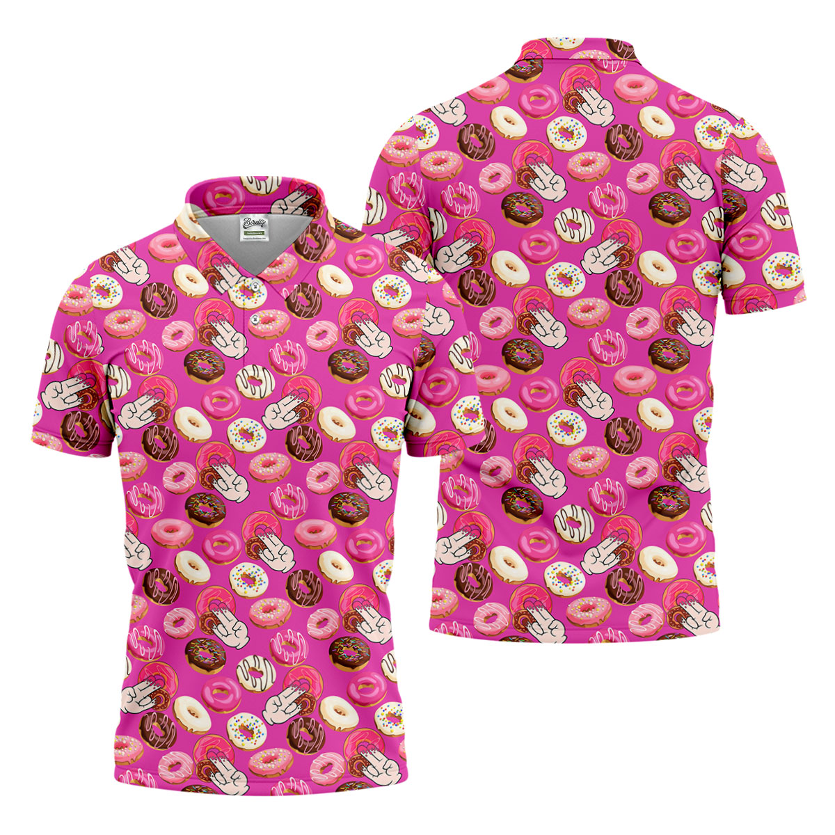 Funny Donut Adult Humor Pink Golf Shirt, Fun Golf Shirts For Men, Valentines Golf Gift, Polo Shirts For Men