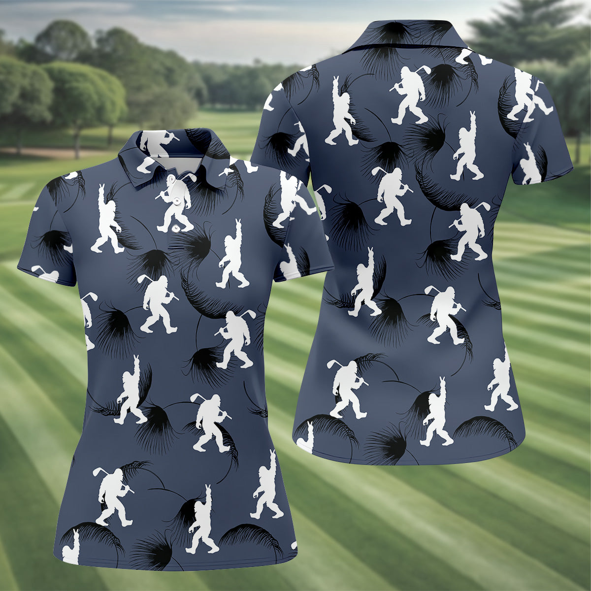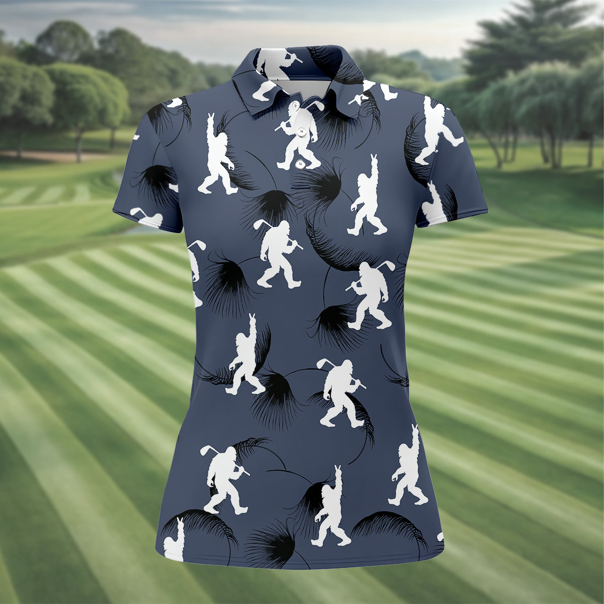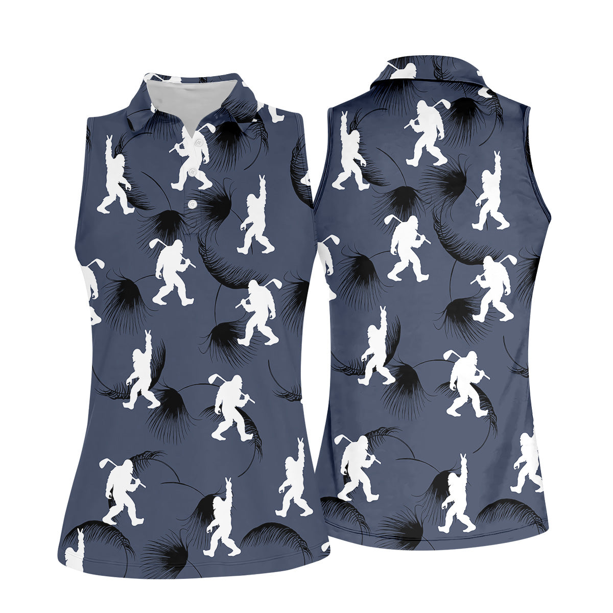 Funny Navy Bigfoot Golf Shirt, Golf Shirt For Women, Ladies Sleeveless Polo, Ladies Golf Shirts