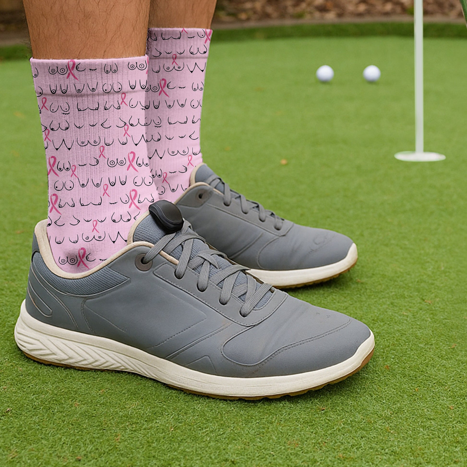 Funny Pink Golf Socks With Breast Cancer Pink Ribbon, Christmas Golf Gift, Golfing Apparel