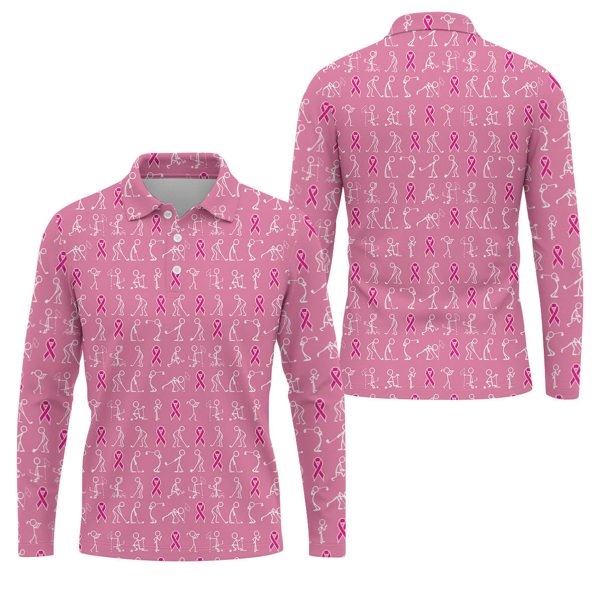 Funny Stick Figure Men's Golf Shirt, Breast Cancer Awareness Shirt, Pink Golf Shirt, Golf Shirts For Men