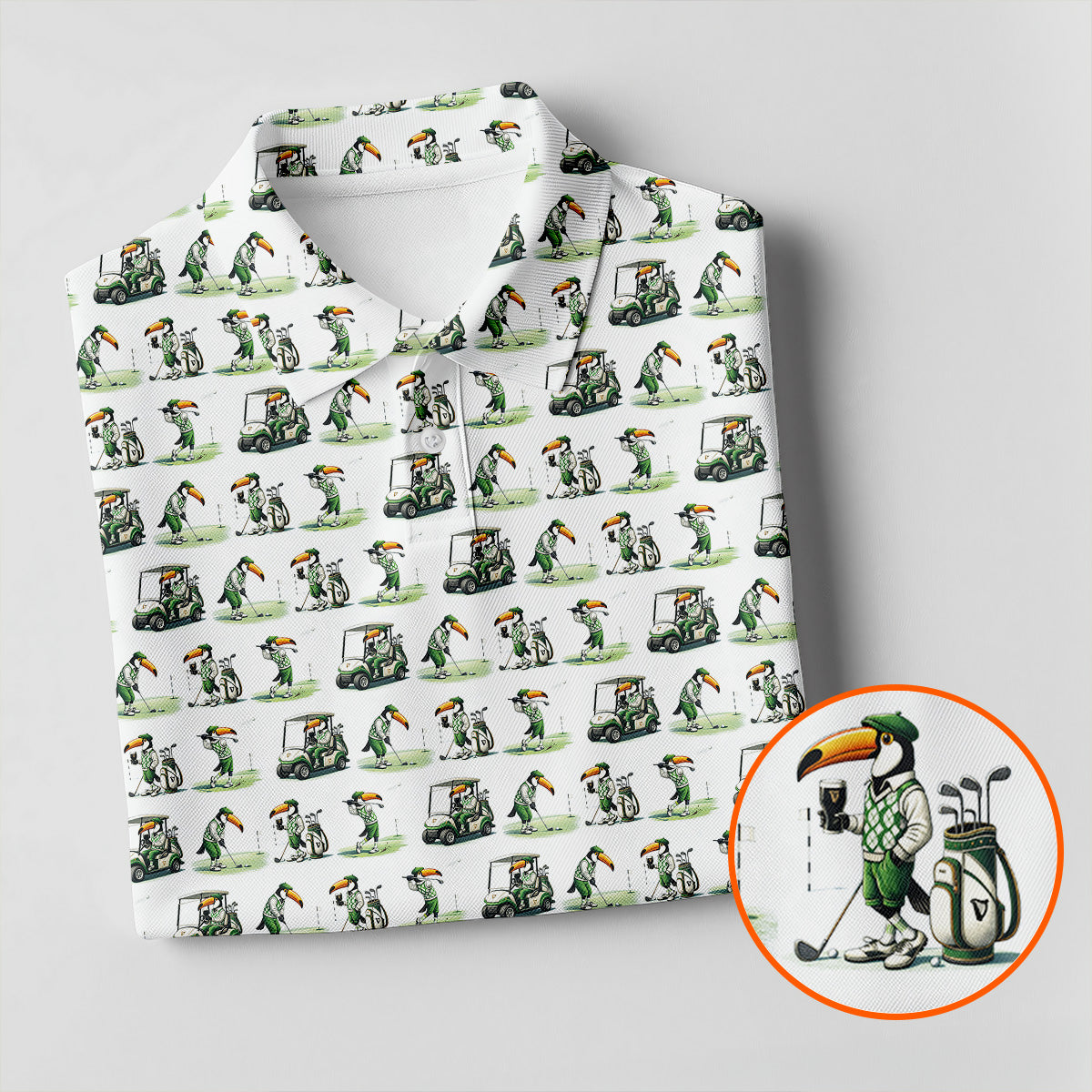Funny Toucan Golf Pose White And Green Ladies Golf Tops, Fun Women's Golf Shirts, Golf Shirt For Women