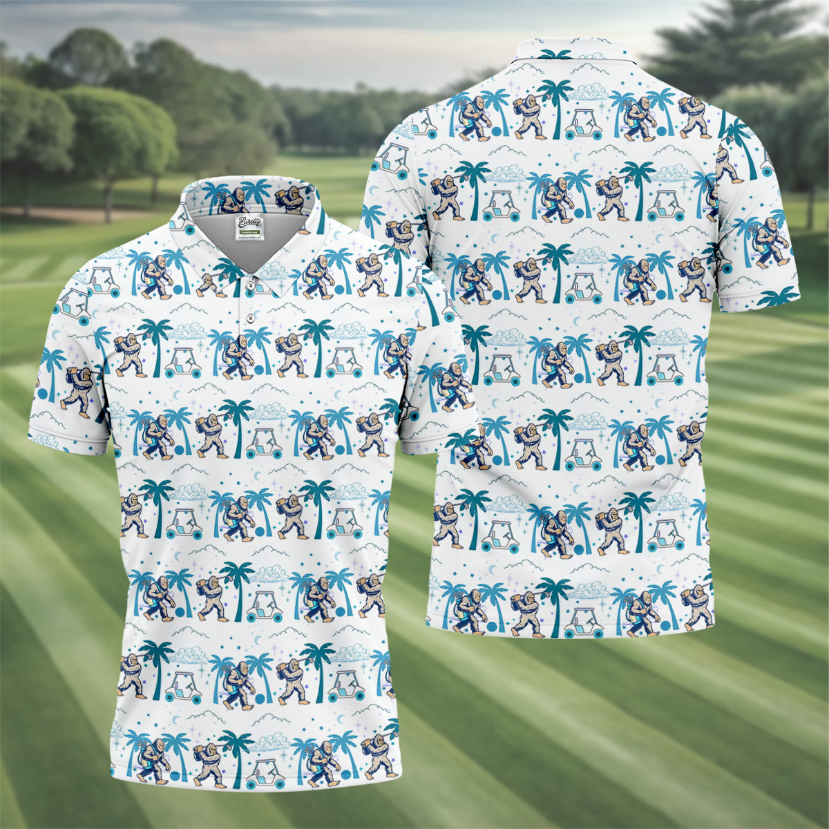 Funny Tropical Golf Cart Bigfoot Golf Shirt, Fun Golf Shirts For Men, Golf Accessories For Men