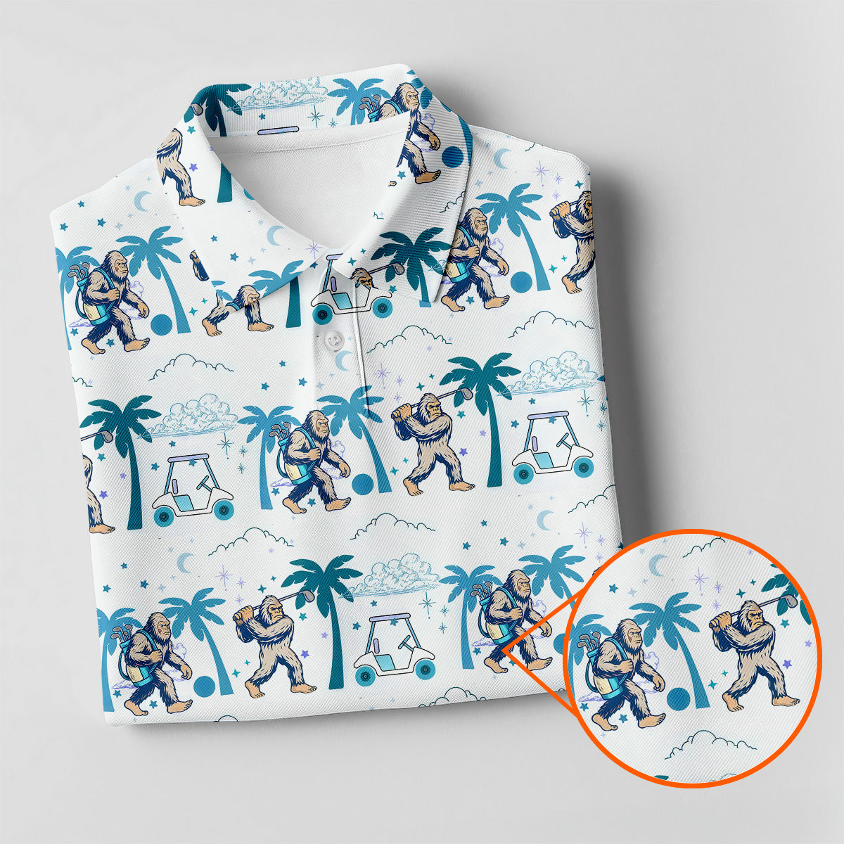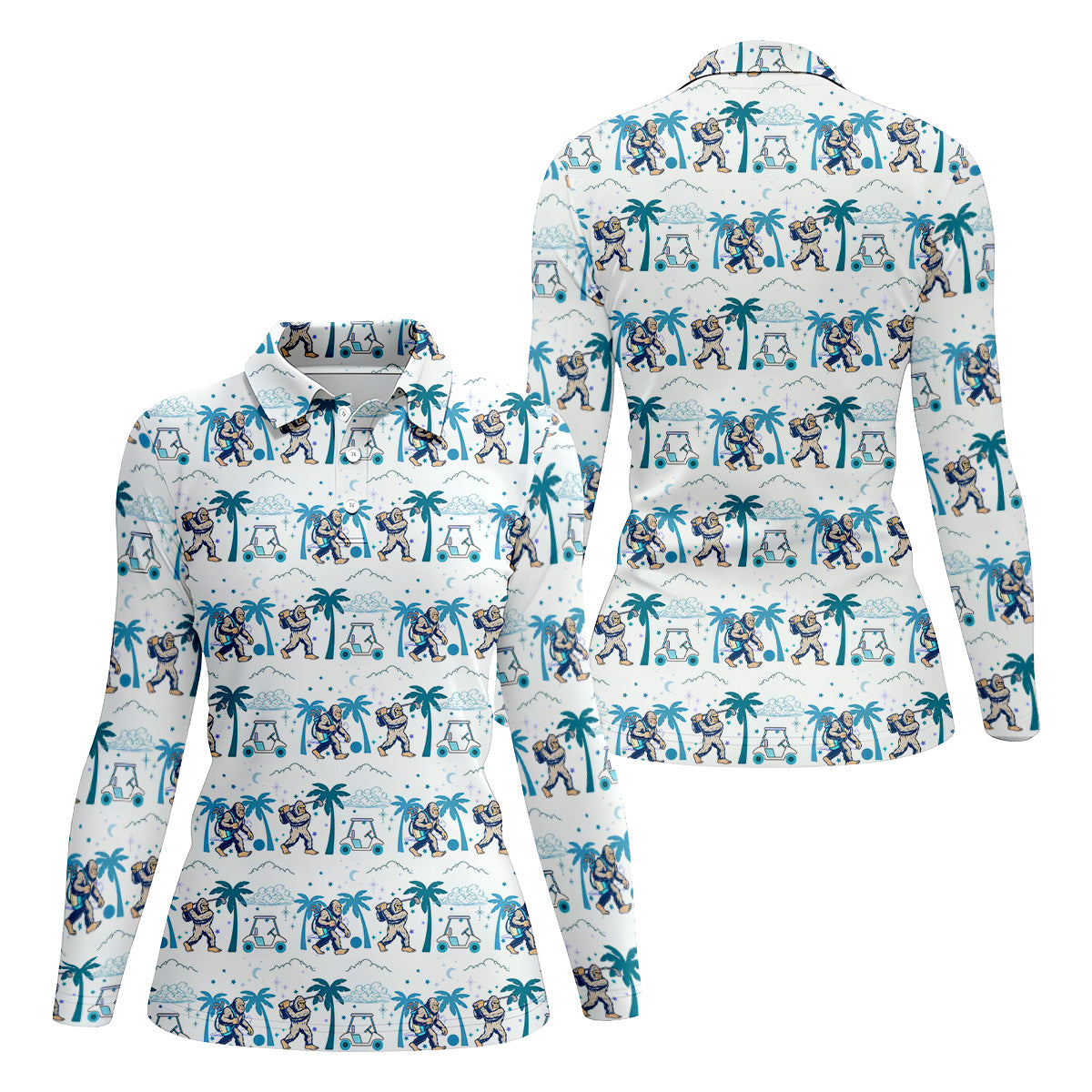 Funny Tropical Golf Cart Bigfoot Golf Shirt, Ladies Sleeveless Polo, Womens Golf Shirts, Golfing Apparel
