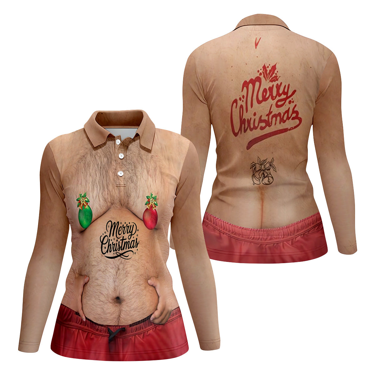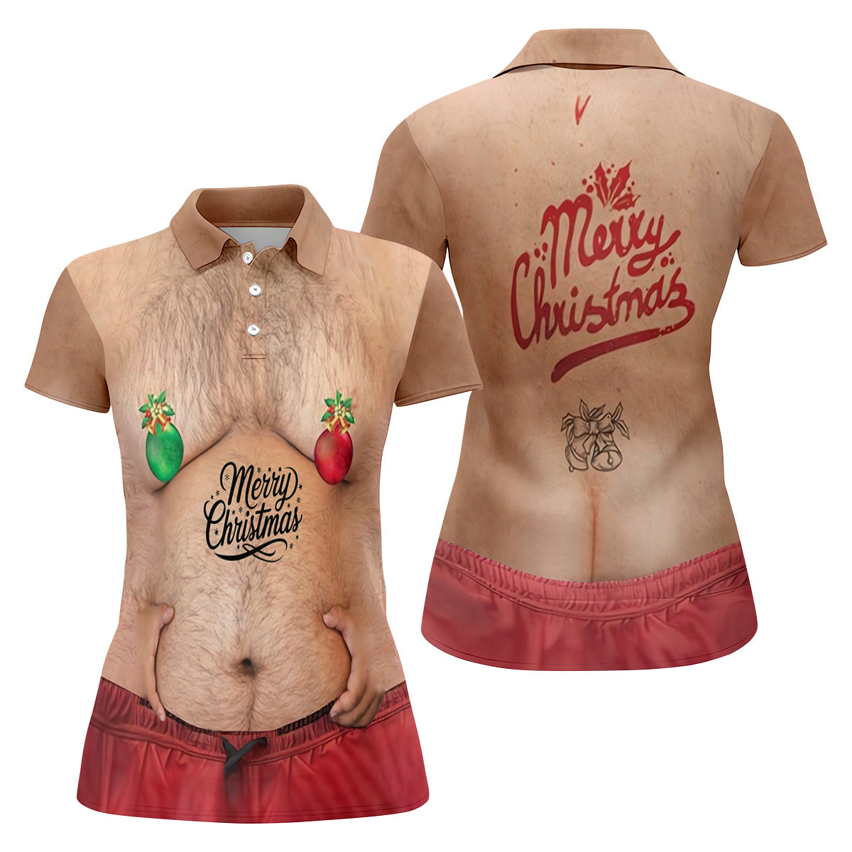 Funny Ugly Hairy Belly Women's Golf Tops, Christmas Golf Shirt, Ladies Golf Polos, Golfing Apparel