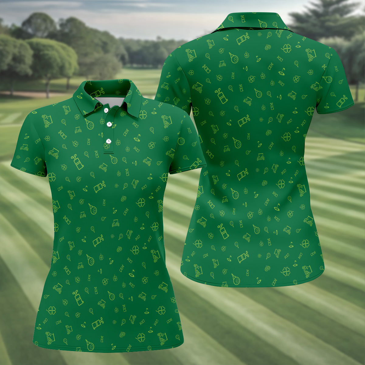 Golf And Beer Lucky Four Leaf Clover St Patrick's Day Green Women's Golf Tops, Golf Gift For Ladies