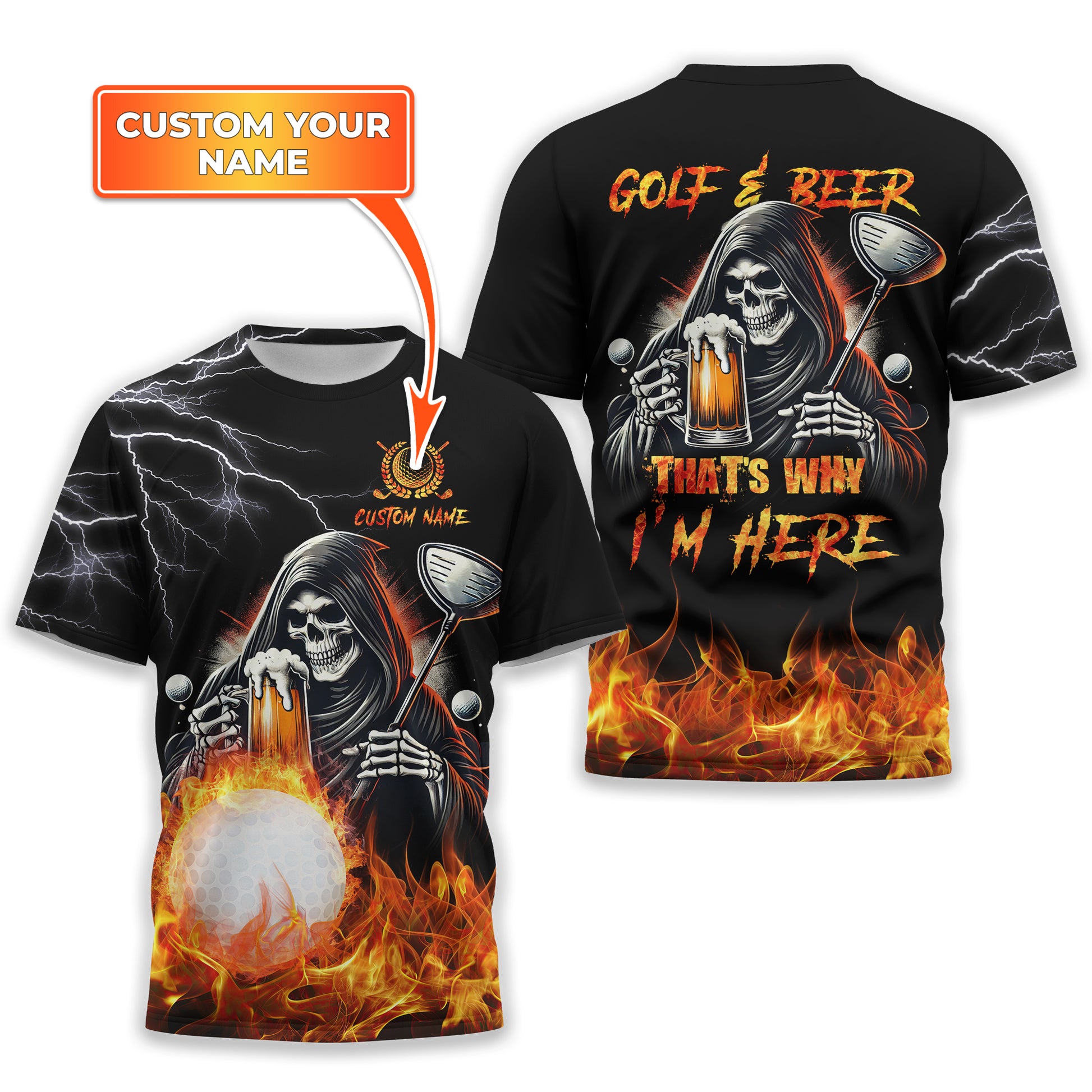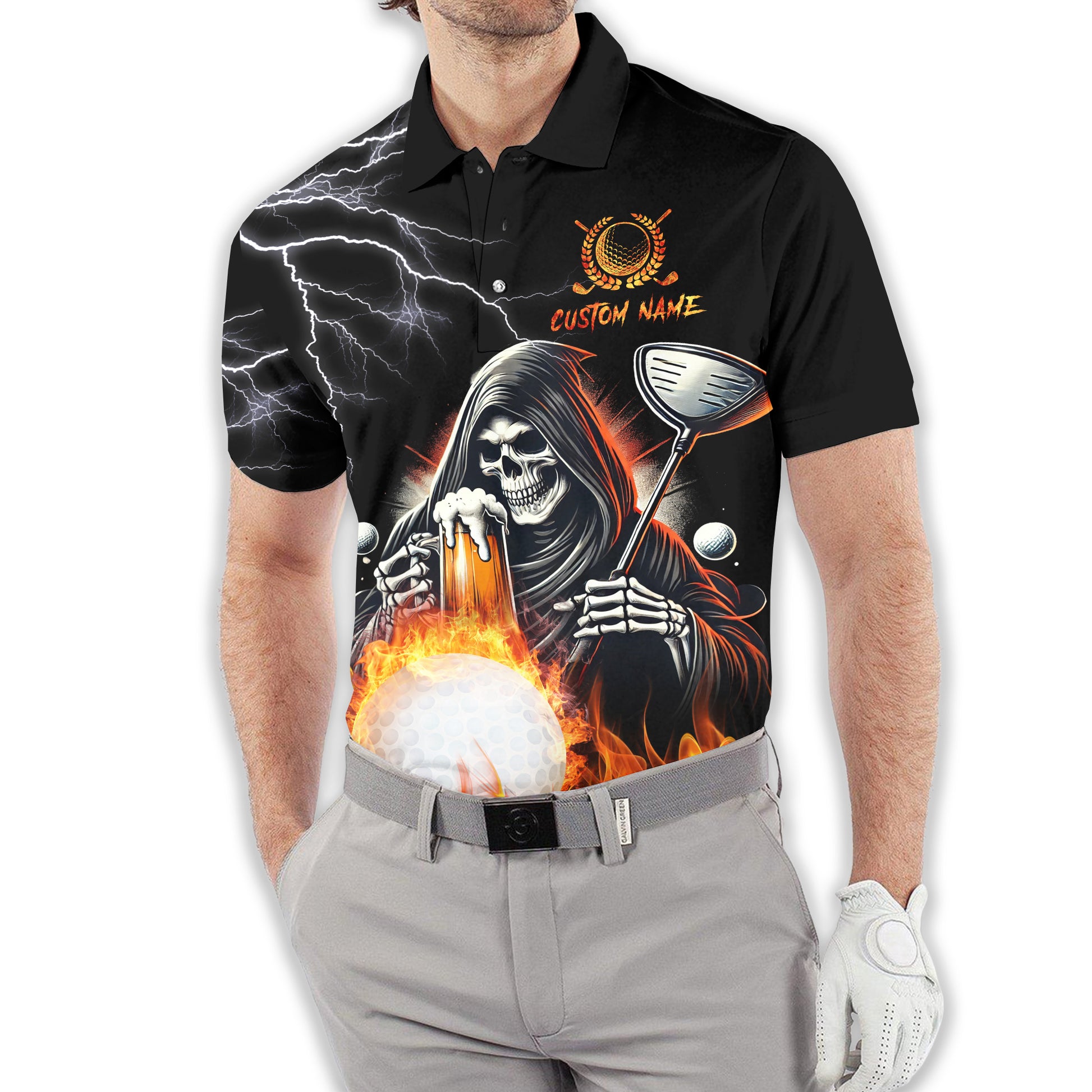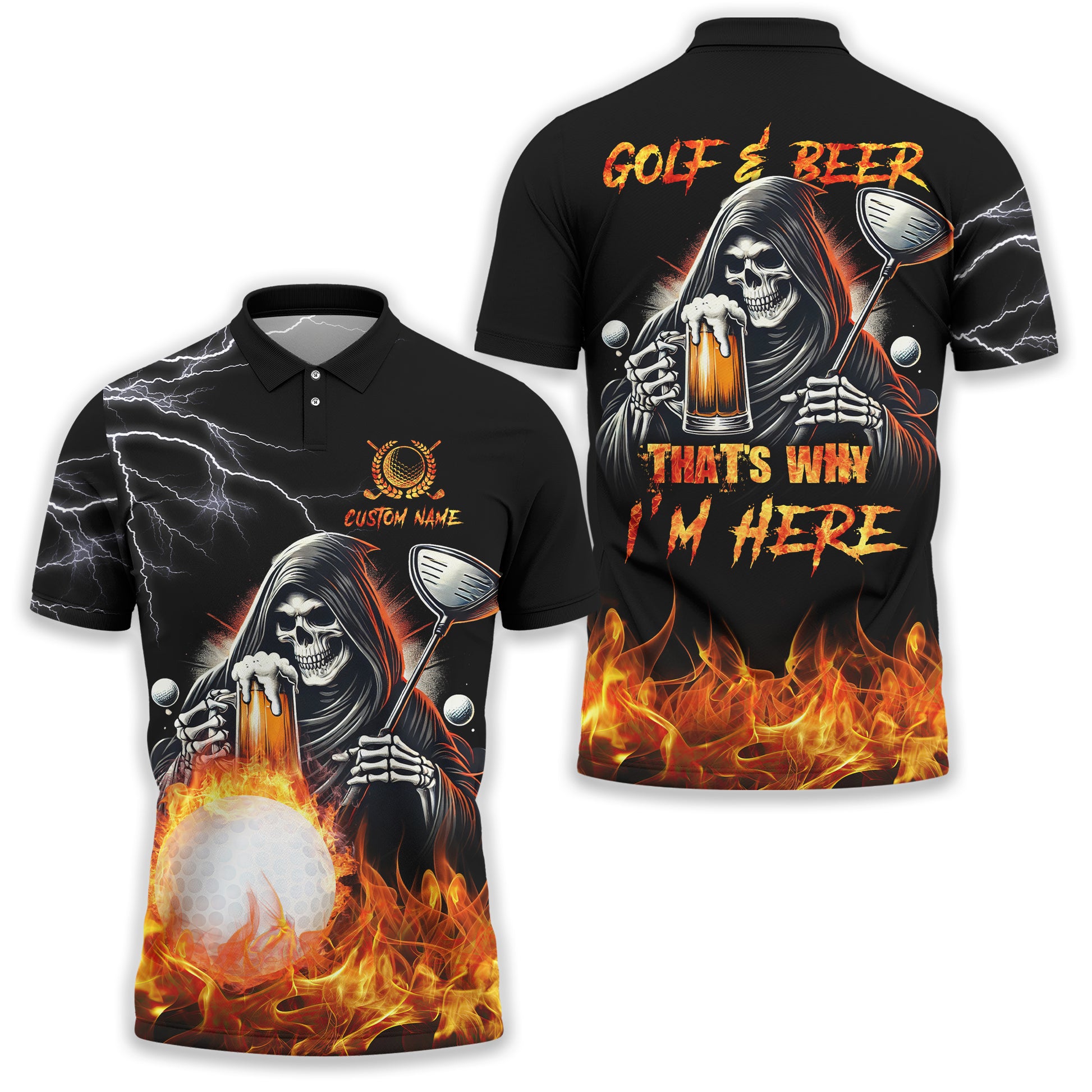 Golf And Beer That's Why I'm Here Custom Skull Golf Polo Shirt, Gift For Golfers, Golf Gift For Men