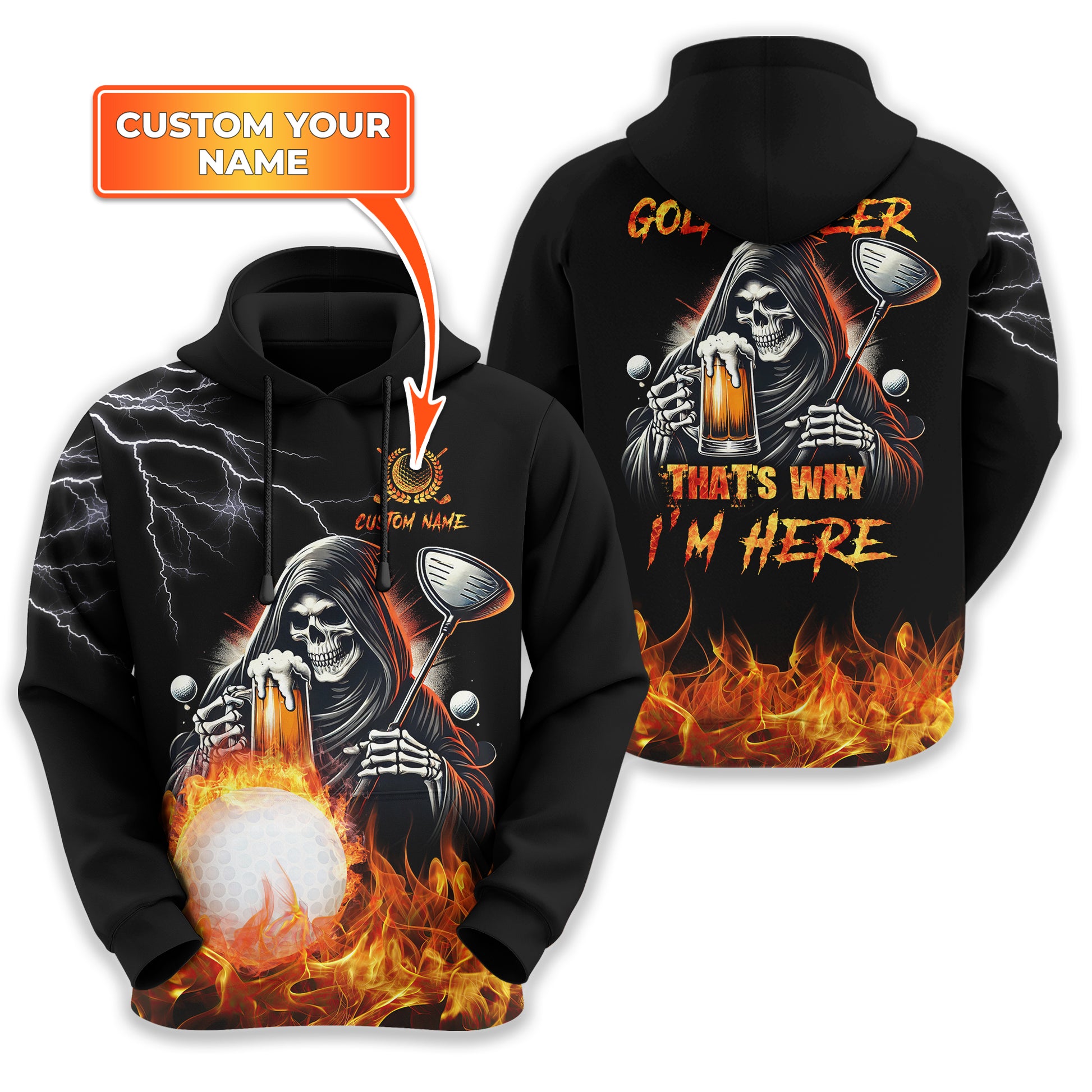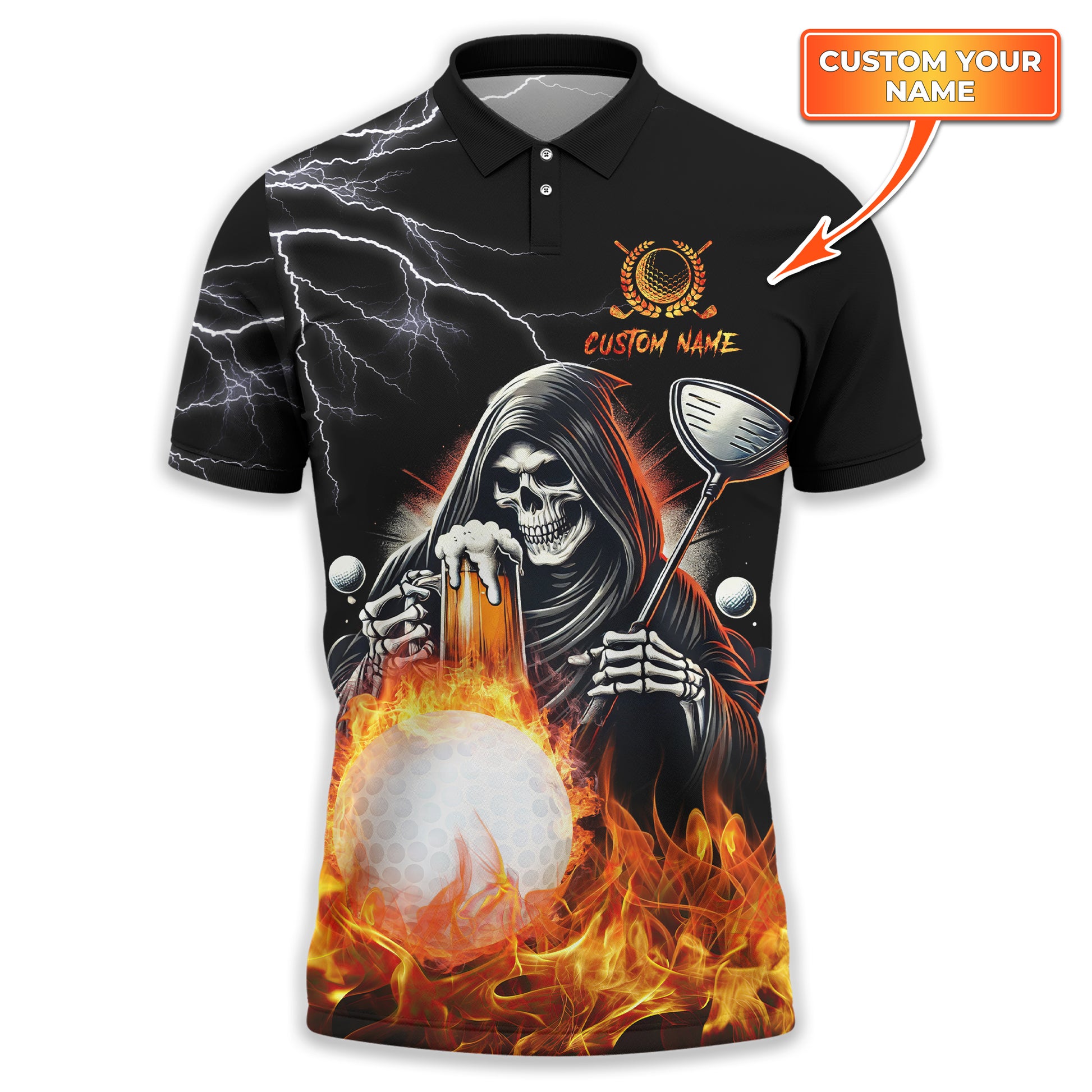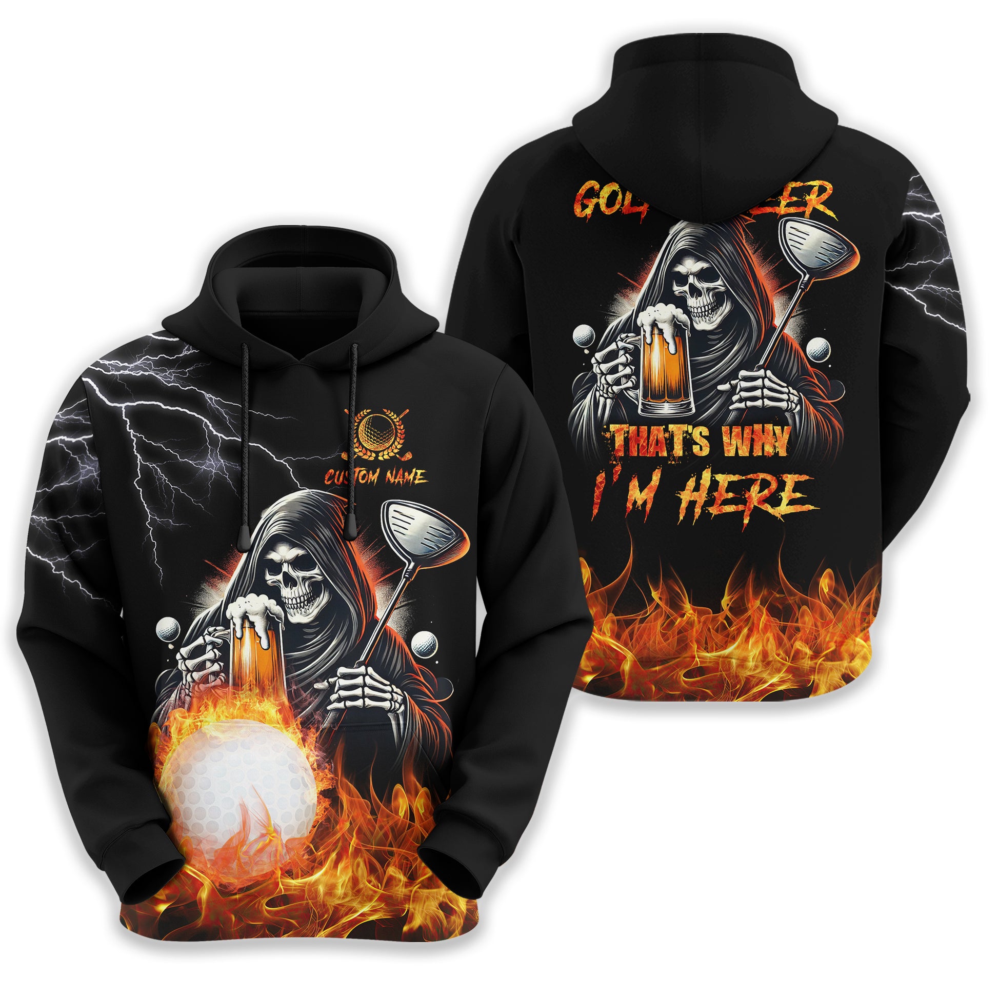 Golf And Beer That's Why I'm Here Custom Skull Golf Polo Shirt, Gift For Golfers, Golf Gift For Men