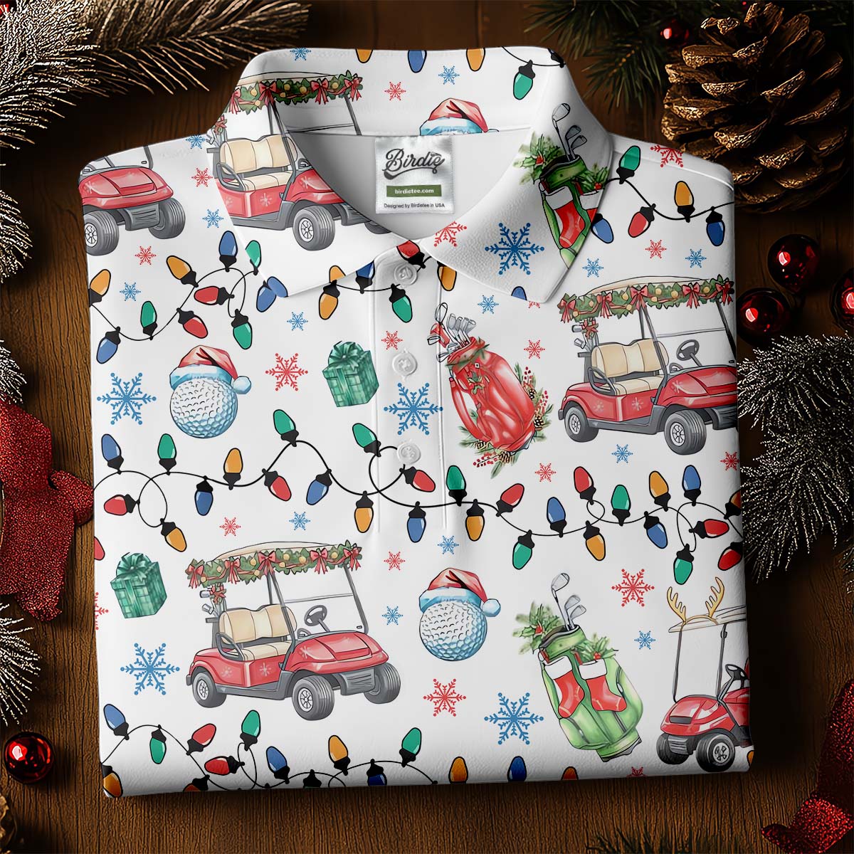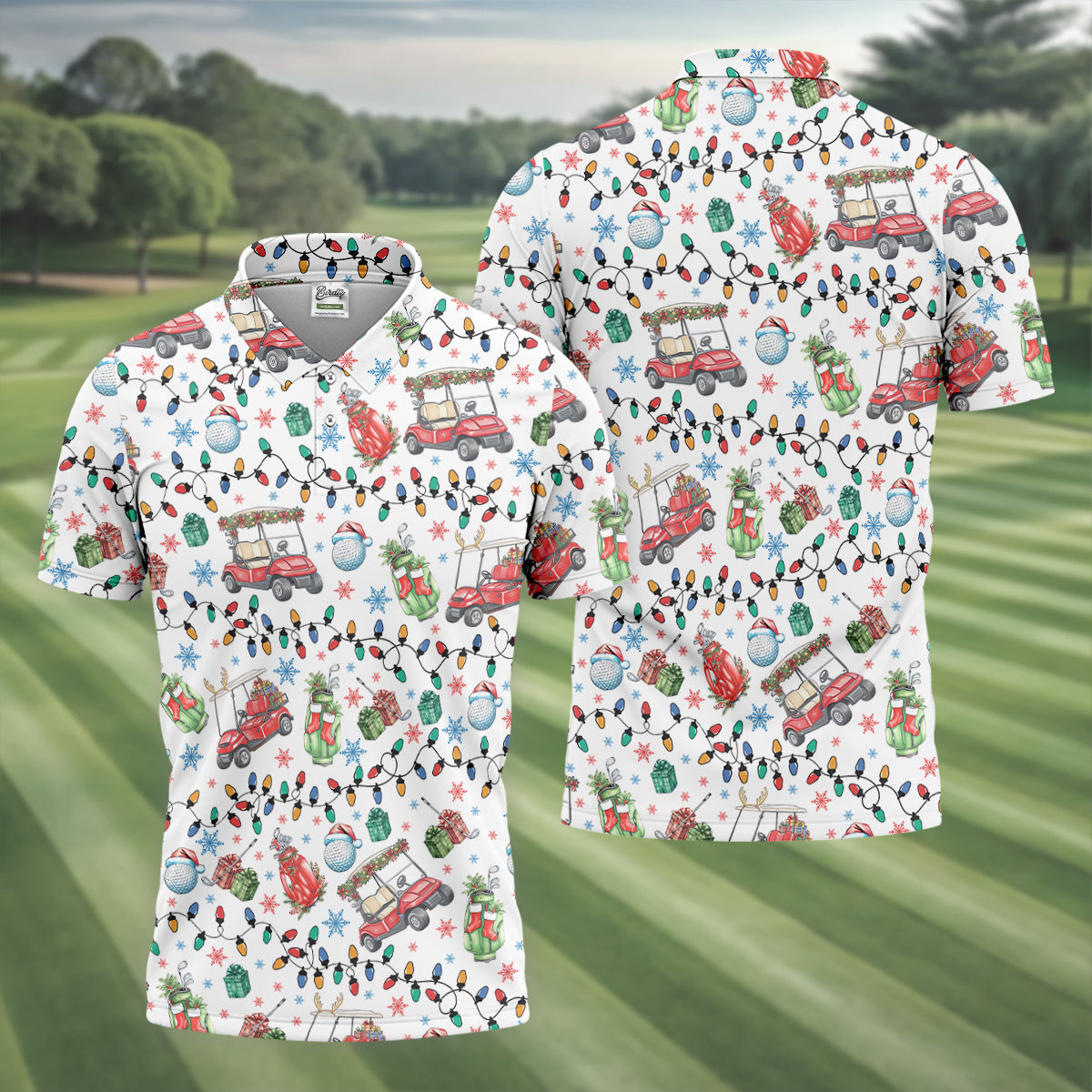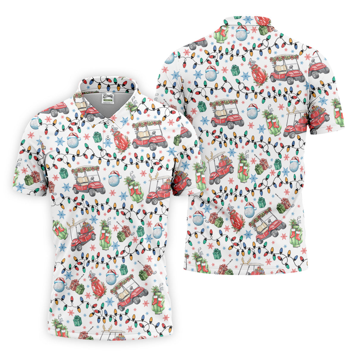 Golf Cart Christmas Lights Polo Shirts For Men, Christmas Golf Shirt, Golf Lover Xmas Gift