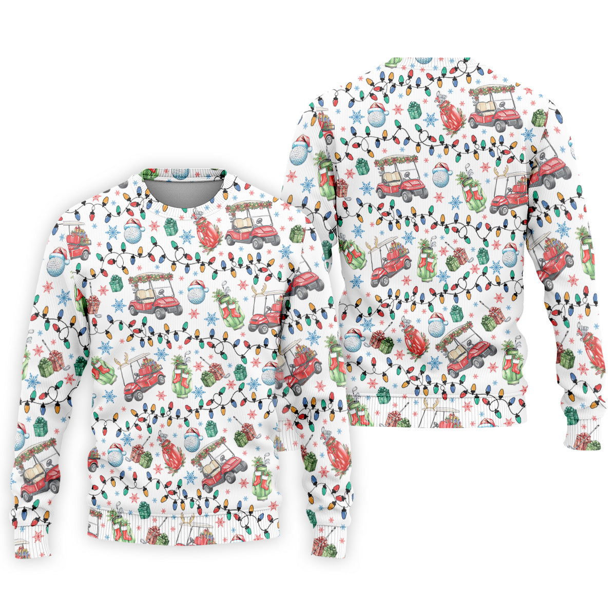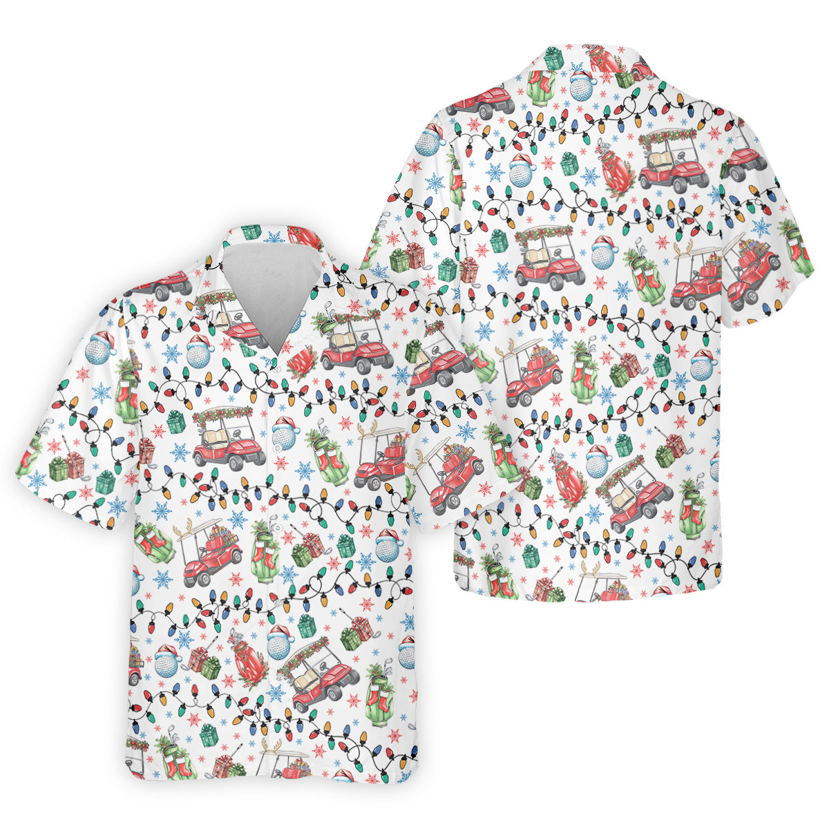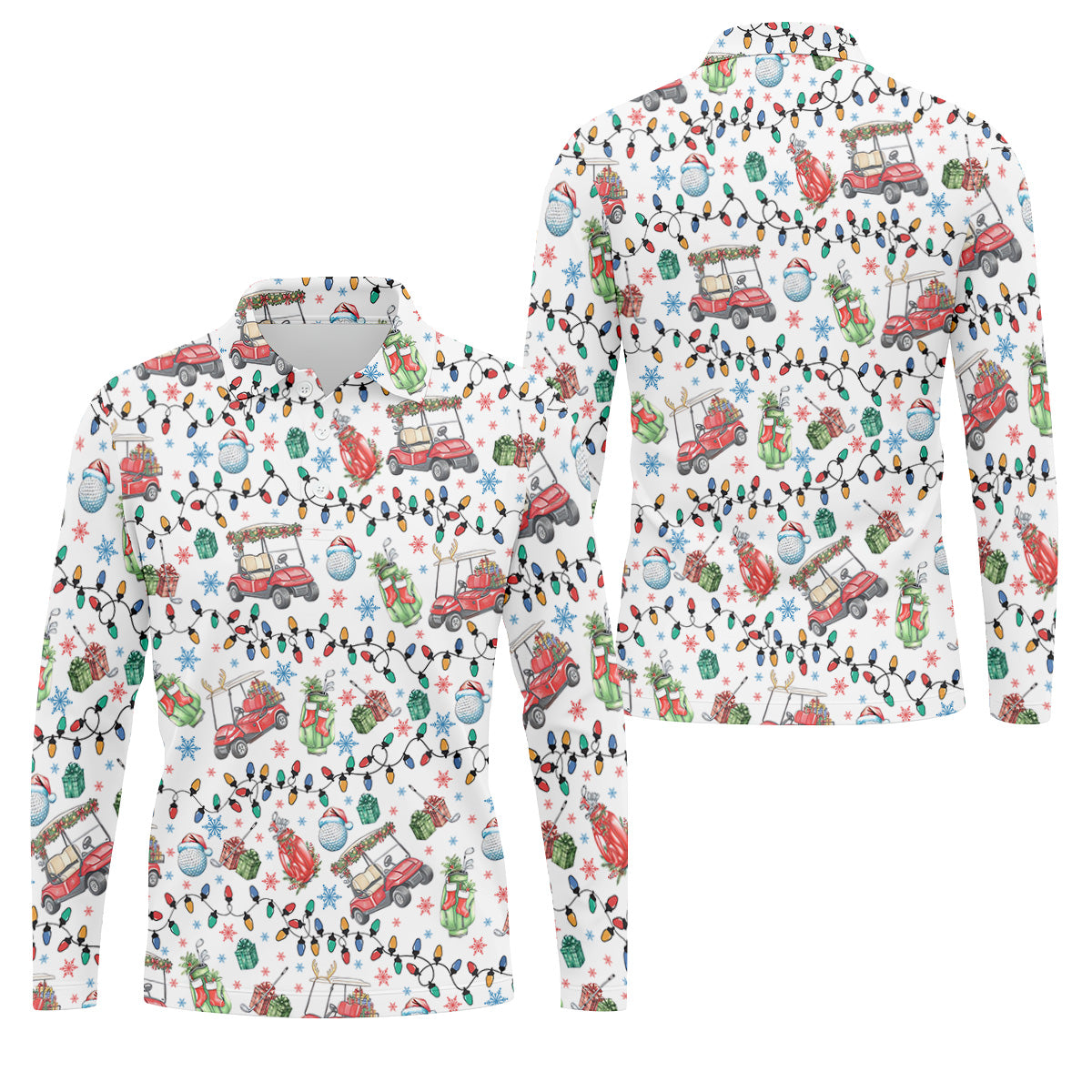 Golf Cart Christmas Lights Polo Shirts For Men, Christmas Golf Shirt, Golf Lover Xmas Gift