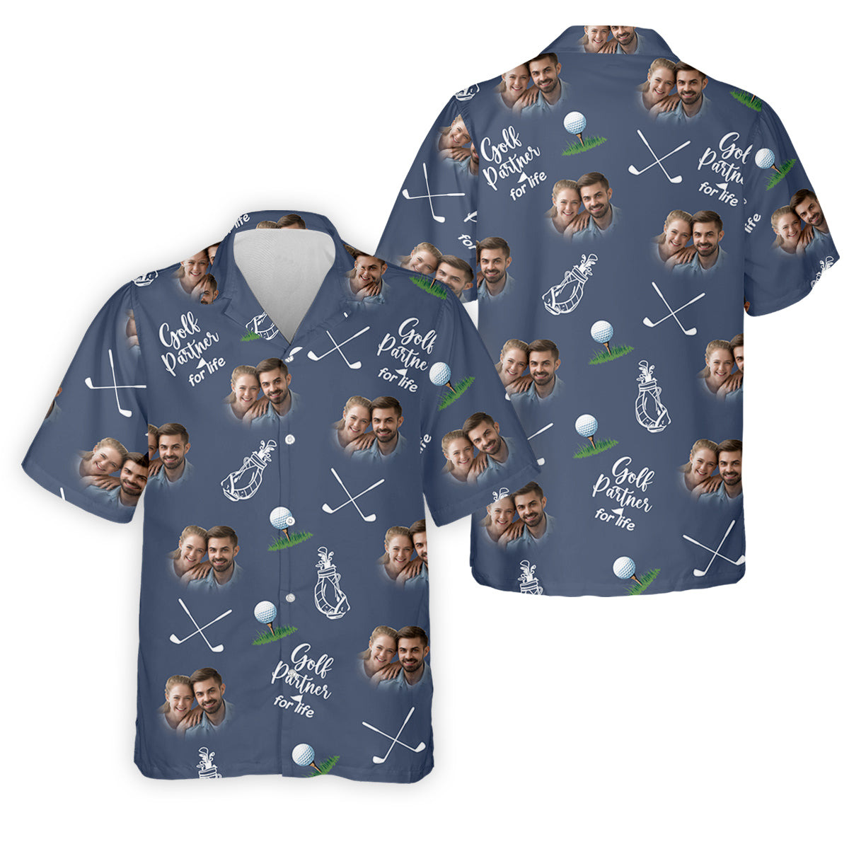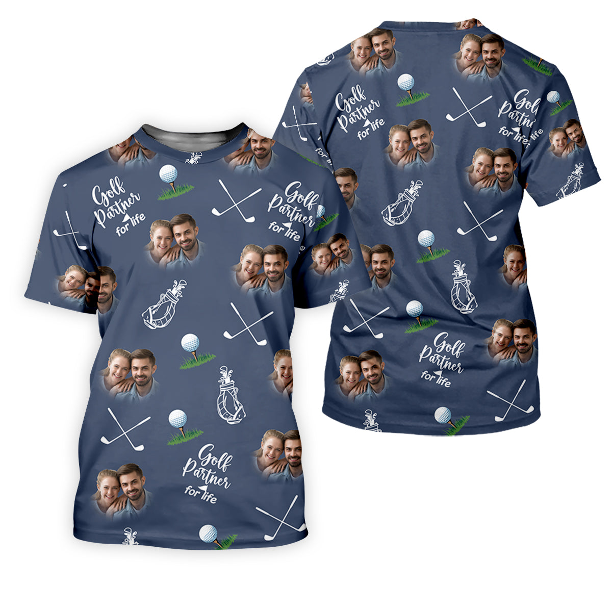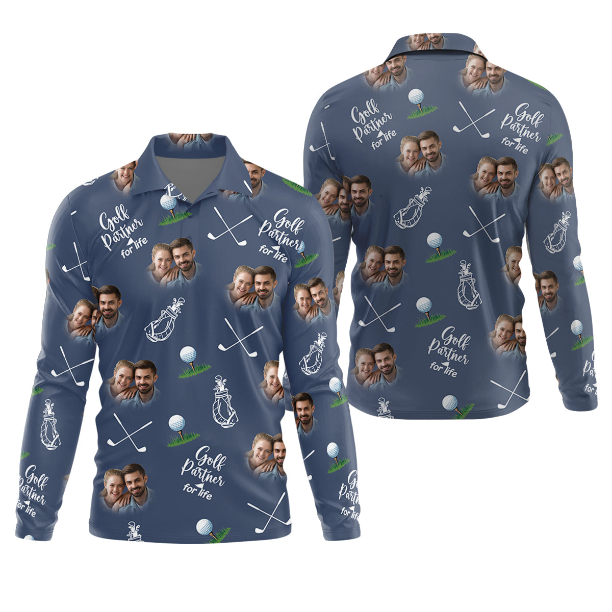 Golf Partner For Life Custom Photo Navy Golf Shirt, Valentines Golf Gift, Fun Golf Shirts For Men, Golf Gift For Men