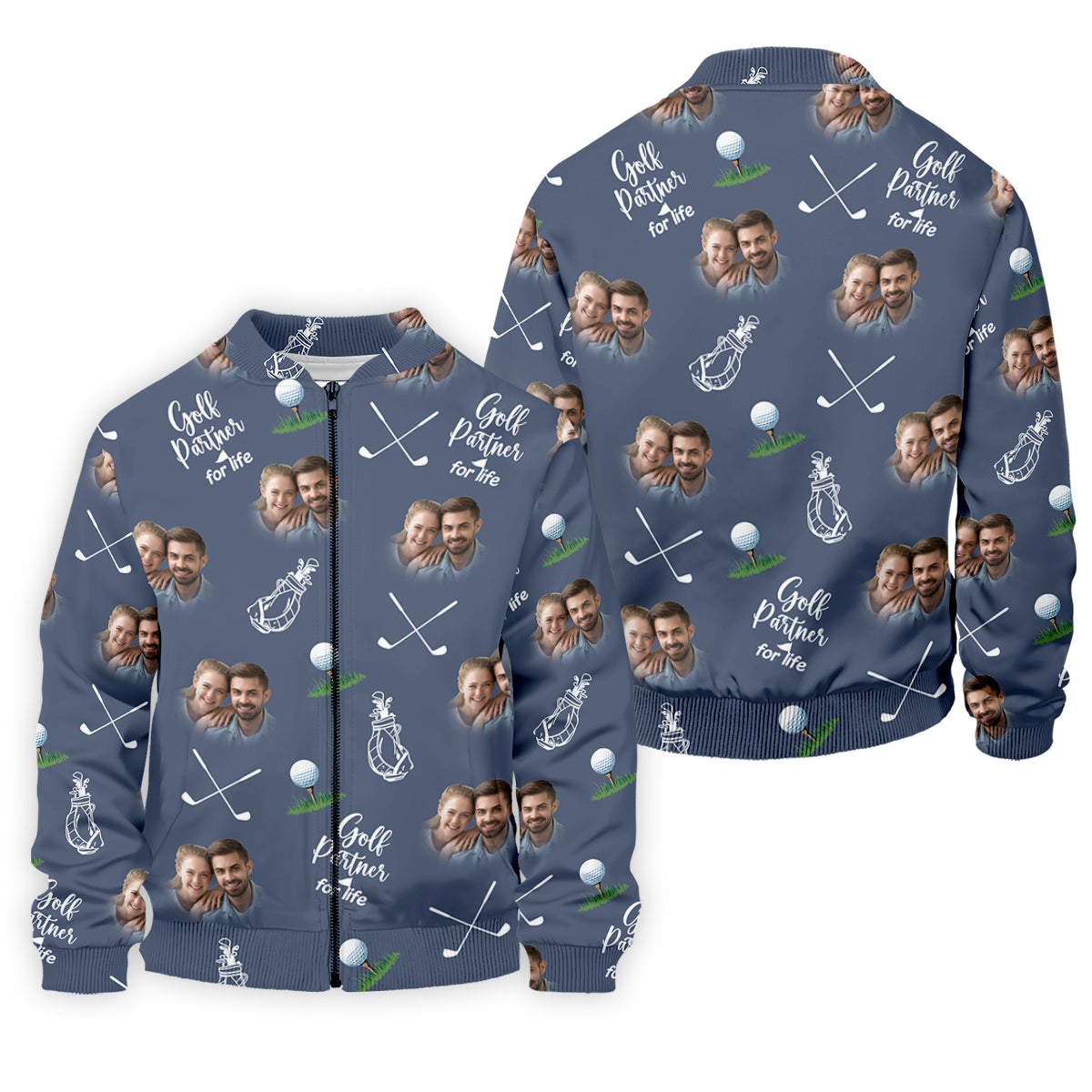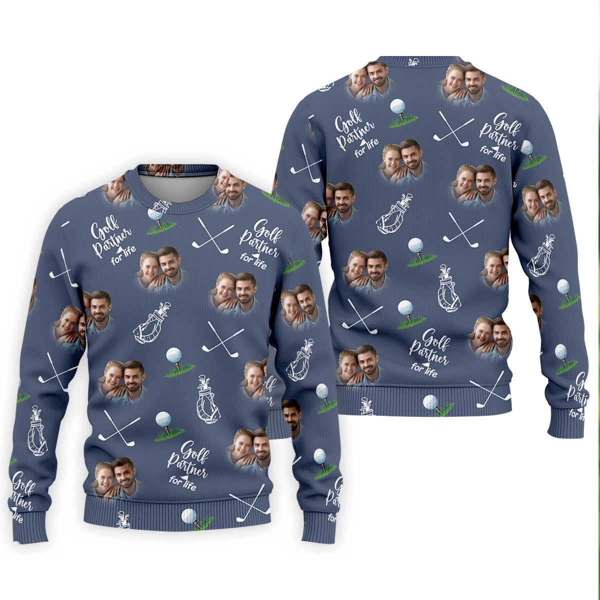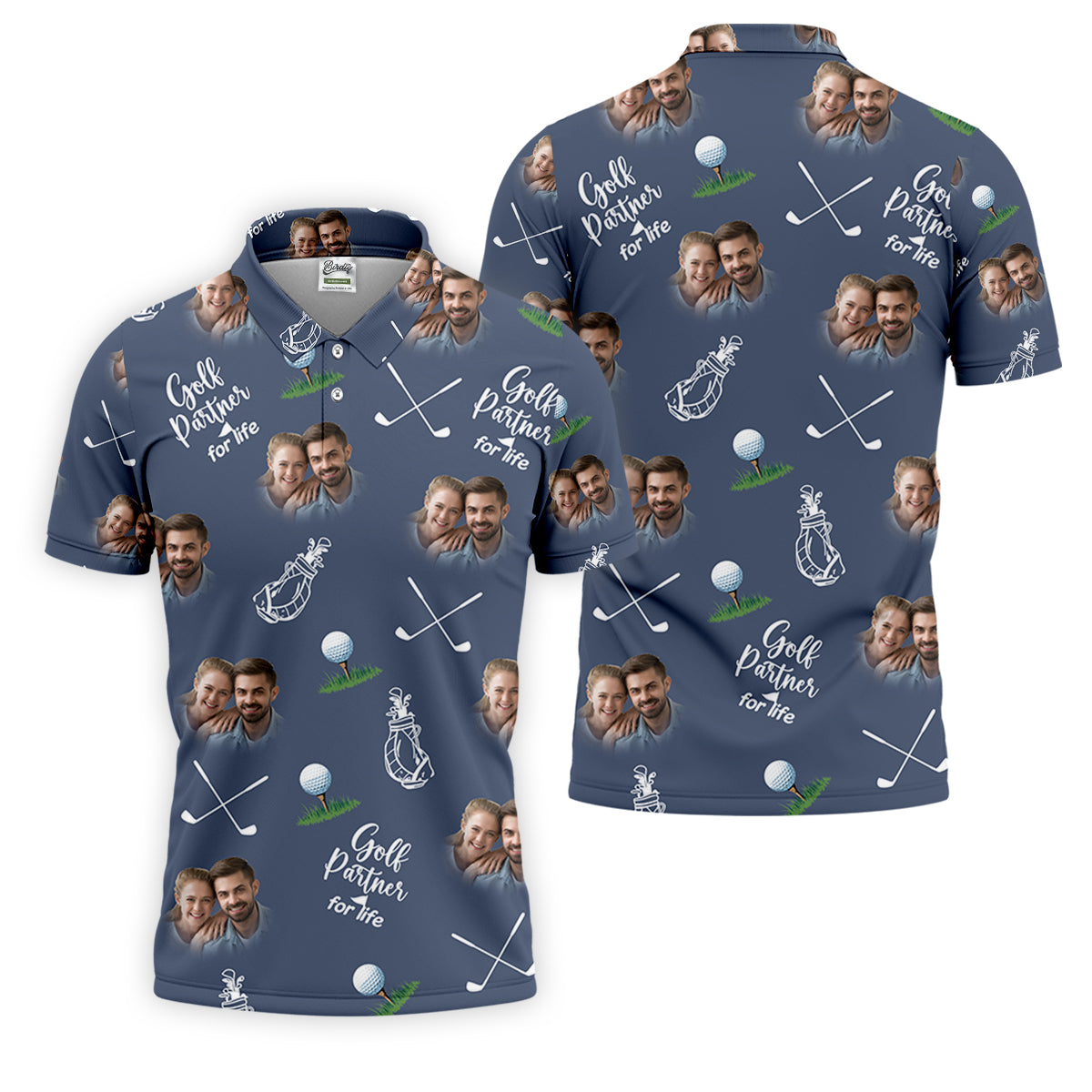 Golf Partner For Life Custom Photo Navy Golf Shirt, Valentines Golf Gift, Fun Golf Shirts For Men, Golf Gift For Men