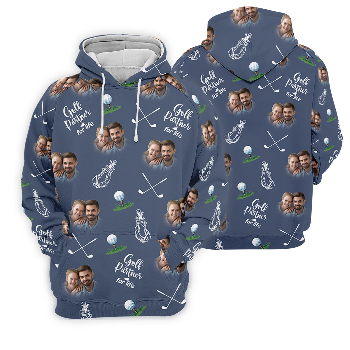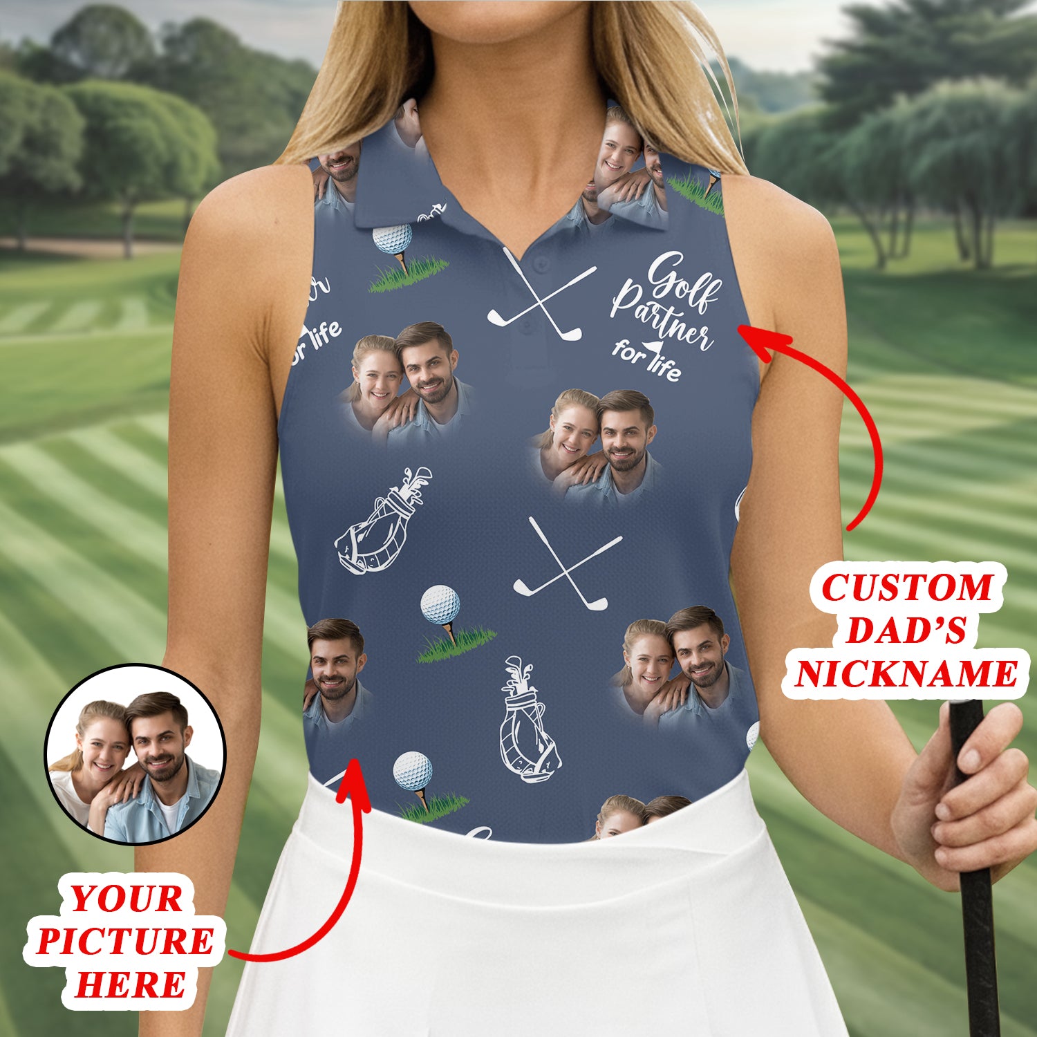 Golf Partner For Life Custom Photo Navy Golf Shirt, Valentines Golf Gift, Women Golf Top, Ladies Golf Polos