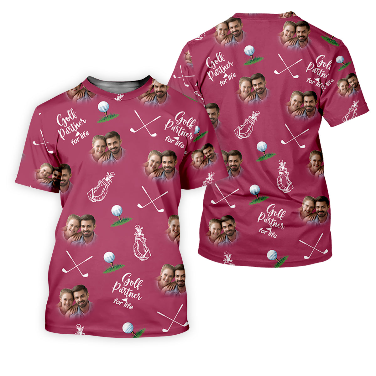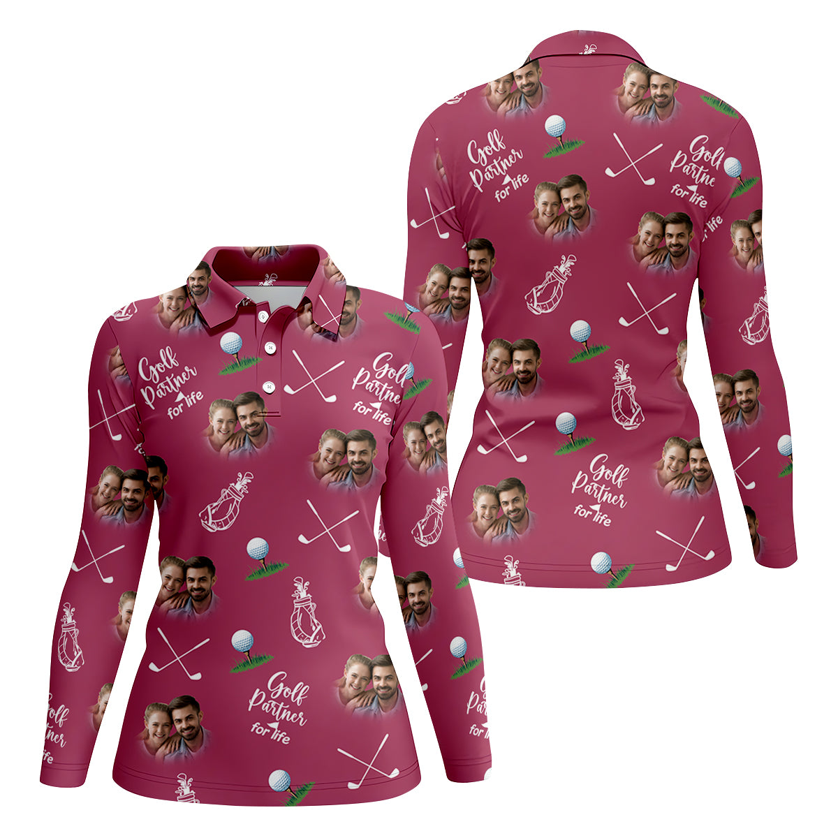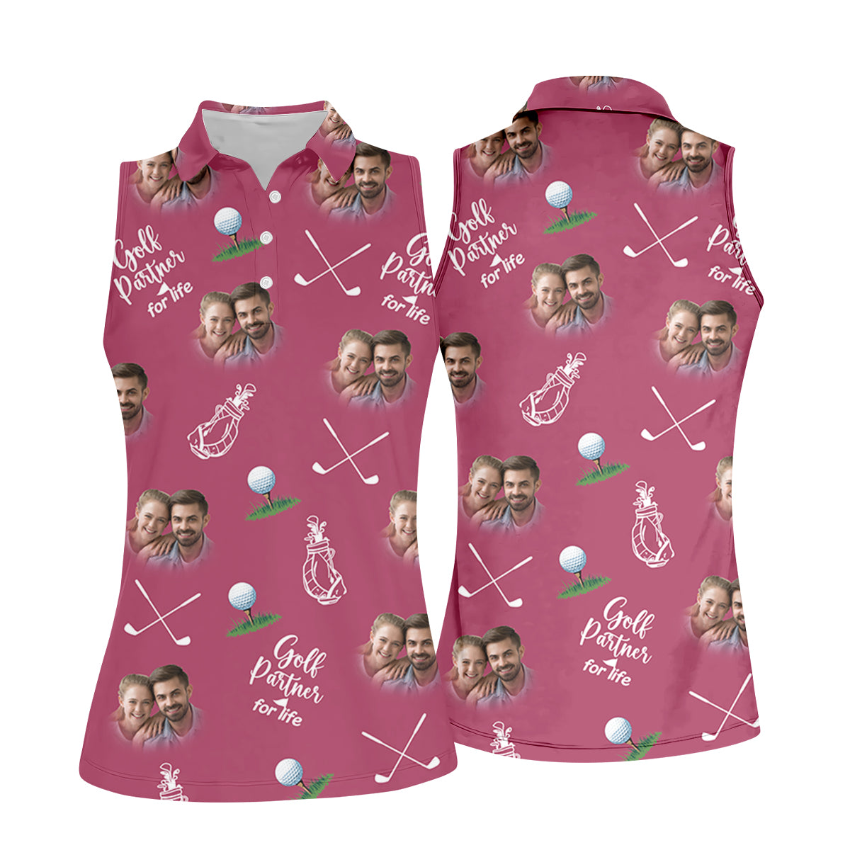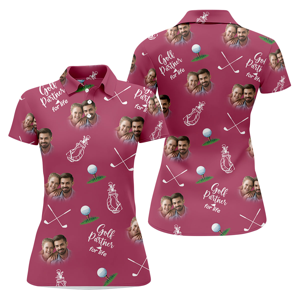 Golf Partner For Life Custom Photo Pink Purple Women Golf Top, Valentines Golf Gift, Ladies Golf Polos