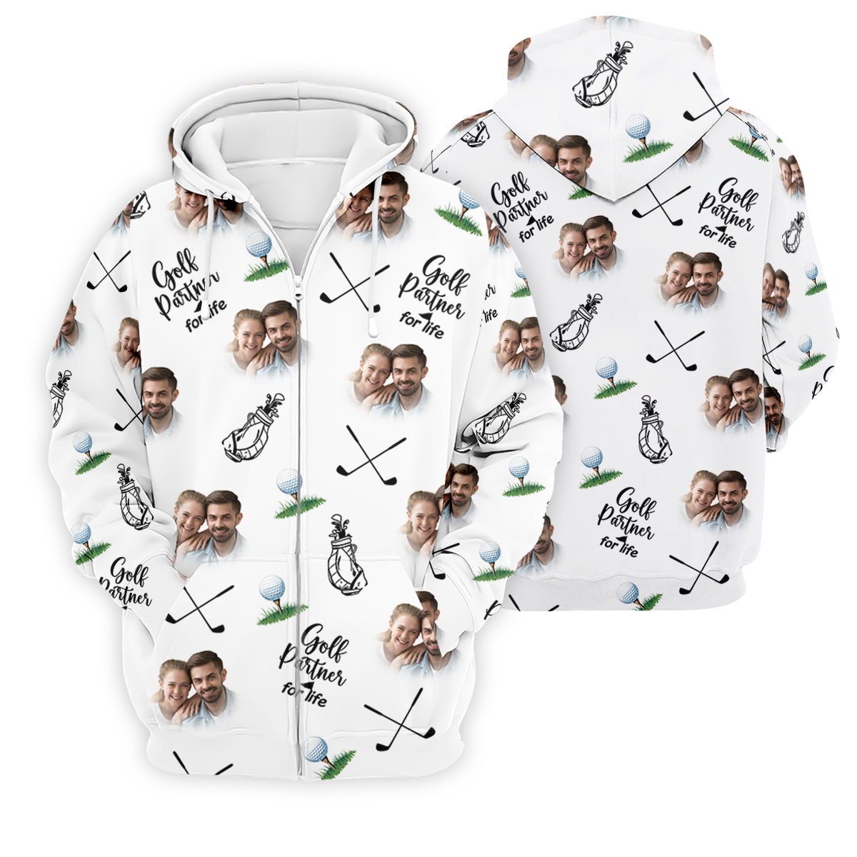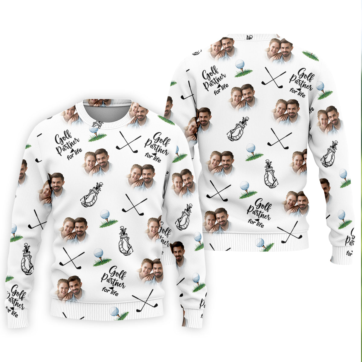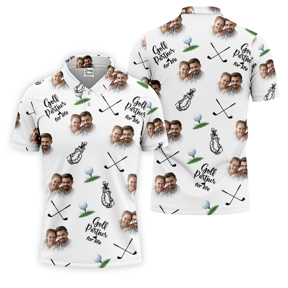Golf Partner For Life Custom Photo White Golf Tops For Men, Valentines Golf Gift, Golf Gift For Men