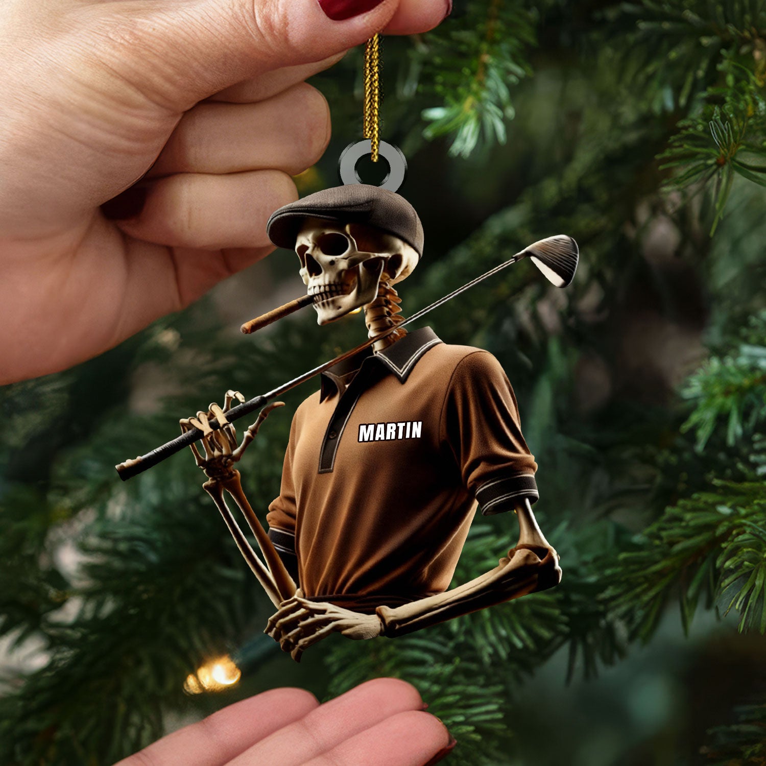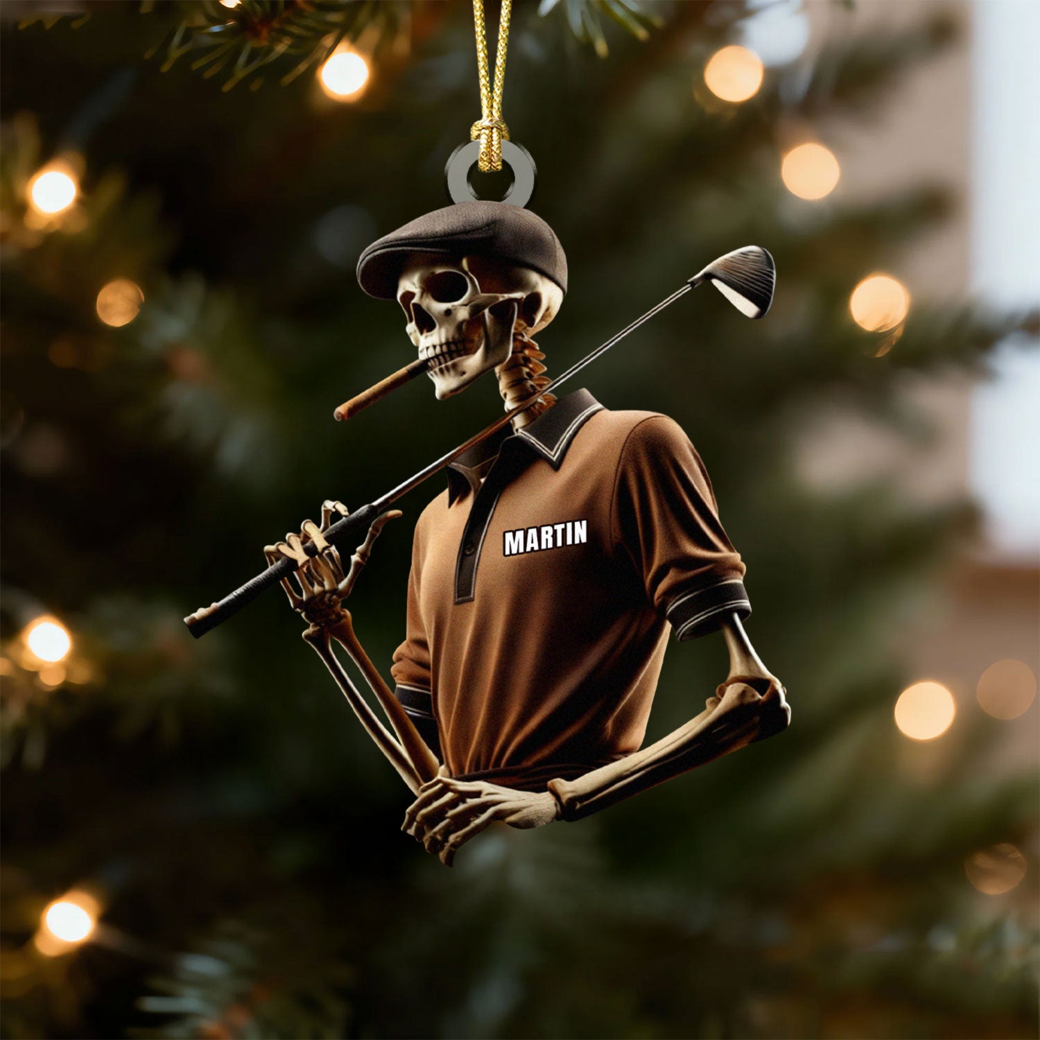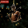 Golfing Skeleton Smoking Acrylic Ornament, Golf Christmas Ornaments, Christmas Golf Gift