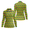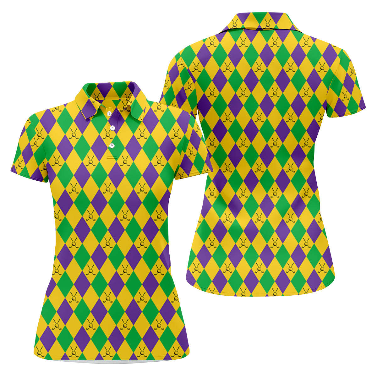Green Gold Purple Argyle Pattern Mardi Gras Golf Shirt, Women's Golf Shirts, Ladies Golf Polos, Women's Polo Shirt
