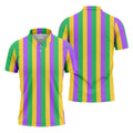 Green Gold Purple Vertical Stripe Mardi Gras Golf Shirt, Polo Shirts For Men, Golf Shirts For Men