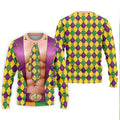 Green Purple Gold Argyle Pattern Fun Suit Mardi Gras Print Golf Shirt, Fun Golf Shirts For Men, Polo For Men