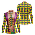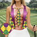 Green Purple Gold Argyle Pattern Fun Suit Mardi Gras Print Golf Shirt, Fun Women's Golf Shirts, Ladies Golf Polos