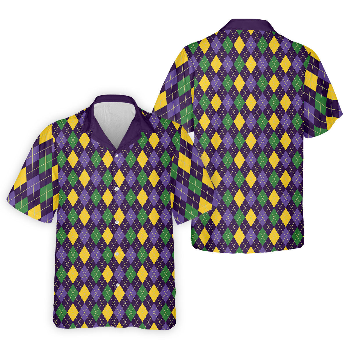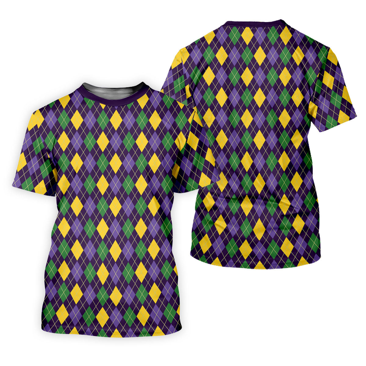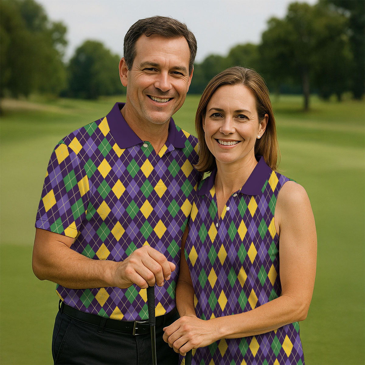 Green Purple Gold Argyle Pattern Mardi Gras Golf Shirt, Polo Shirts For Men, Golf Shirts For Men