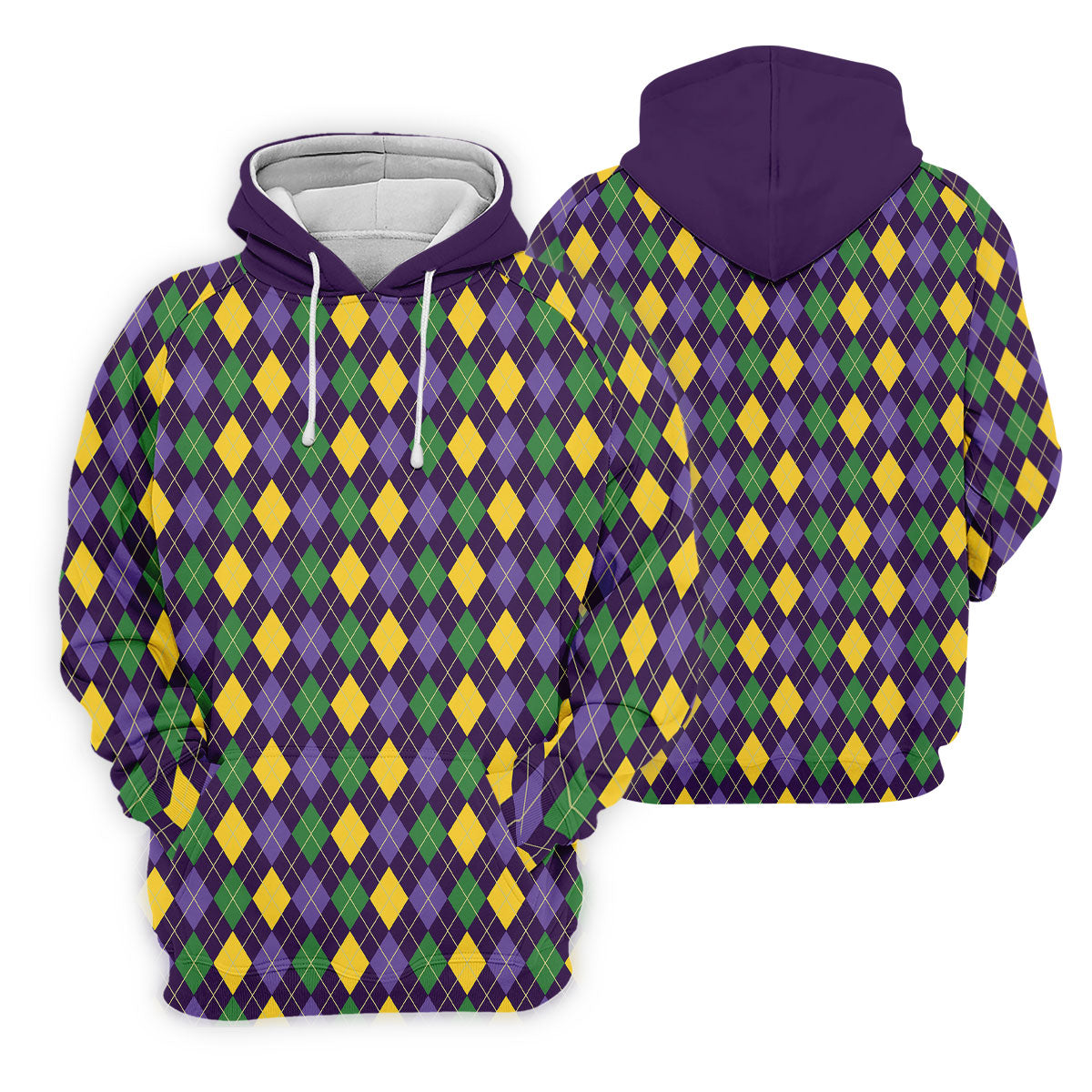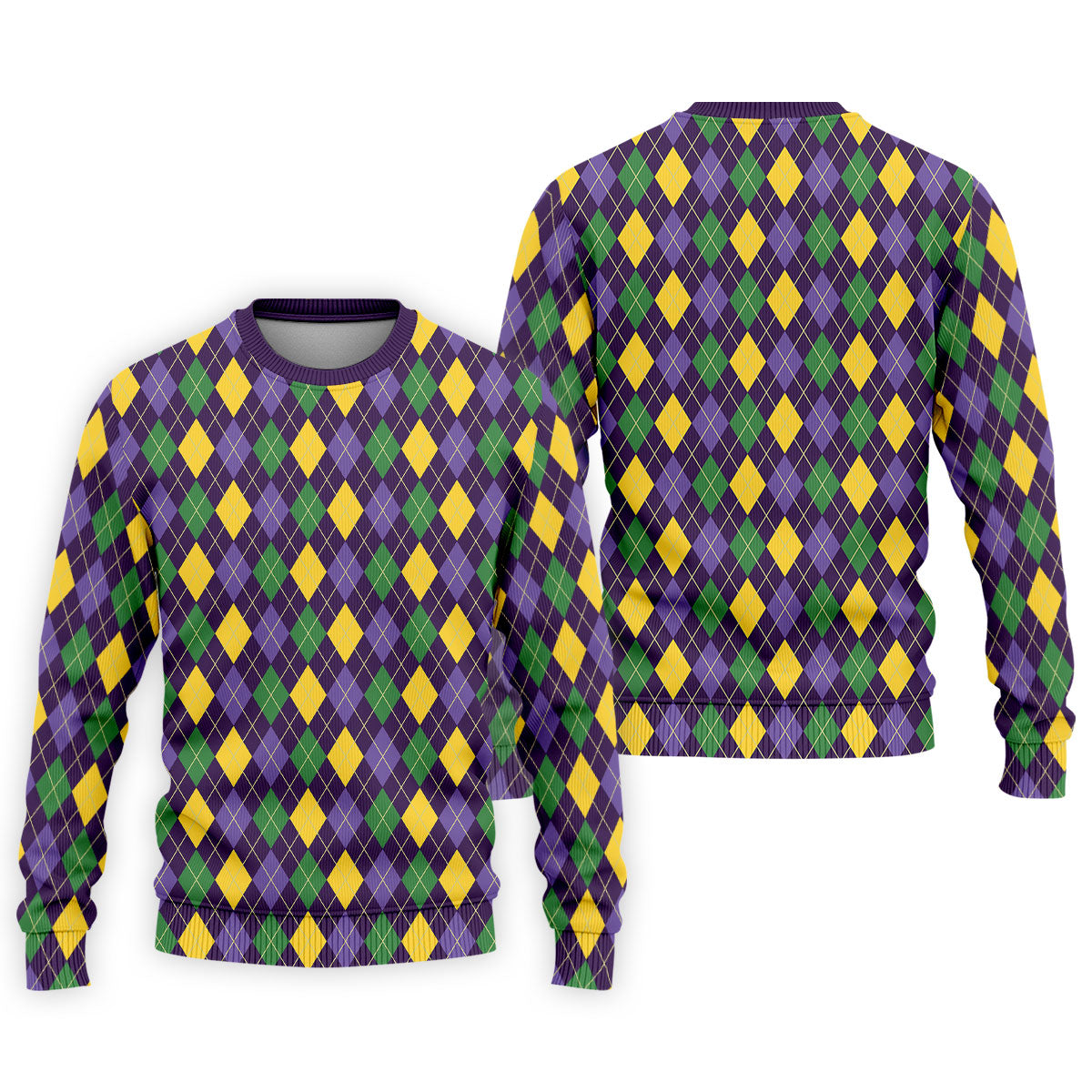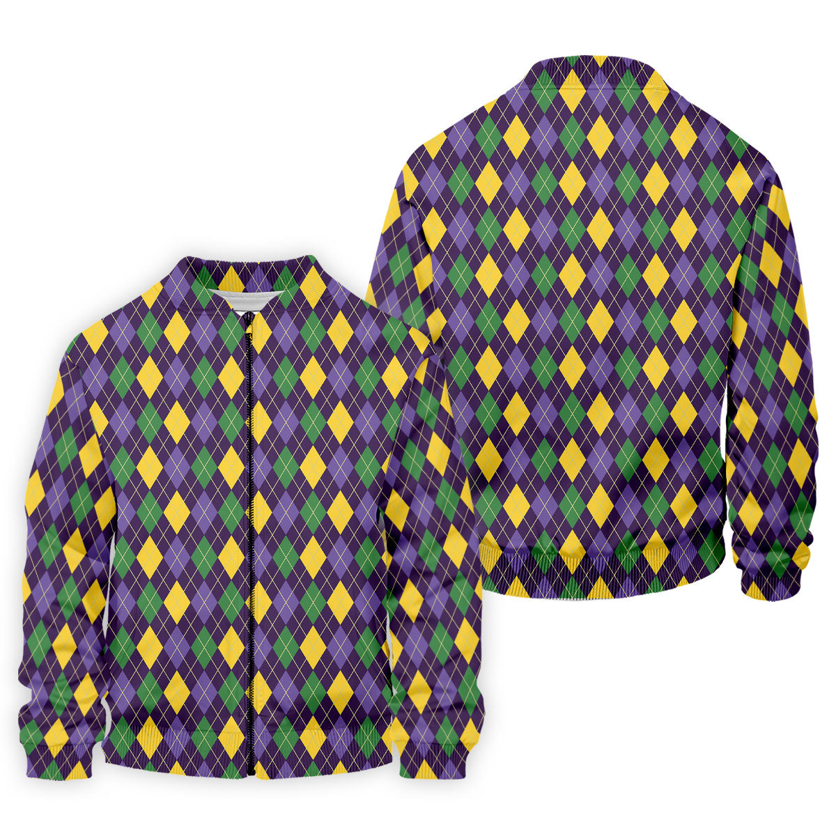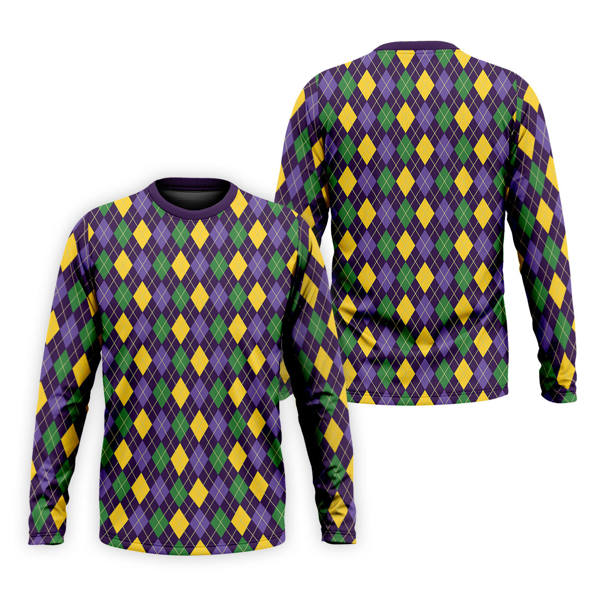 Green Purple Gold Argyle Pattern Mardi Gras Golf Shirt, Polo Shirts For Men, Golf Shirts For Men