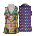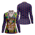 Green Purple Gold Fleur De Lis Symbol Fun Suit Mardi Gras Print Golf Shirt, Fun Women's Golf Shirts, Ladies Golf Polos