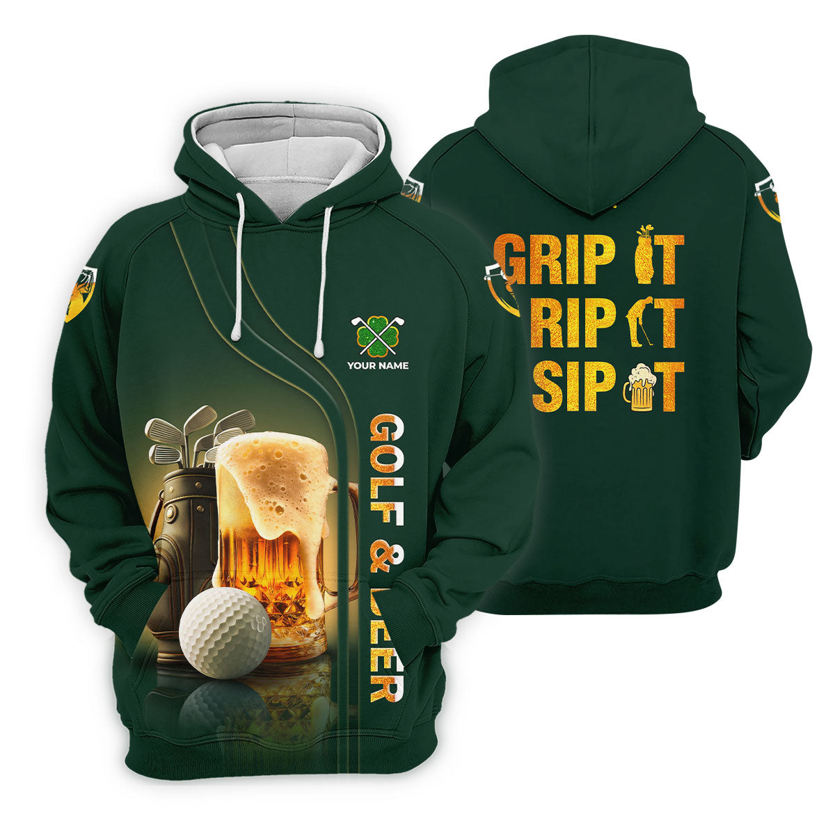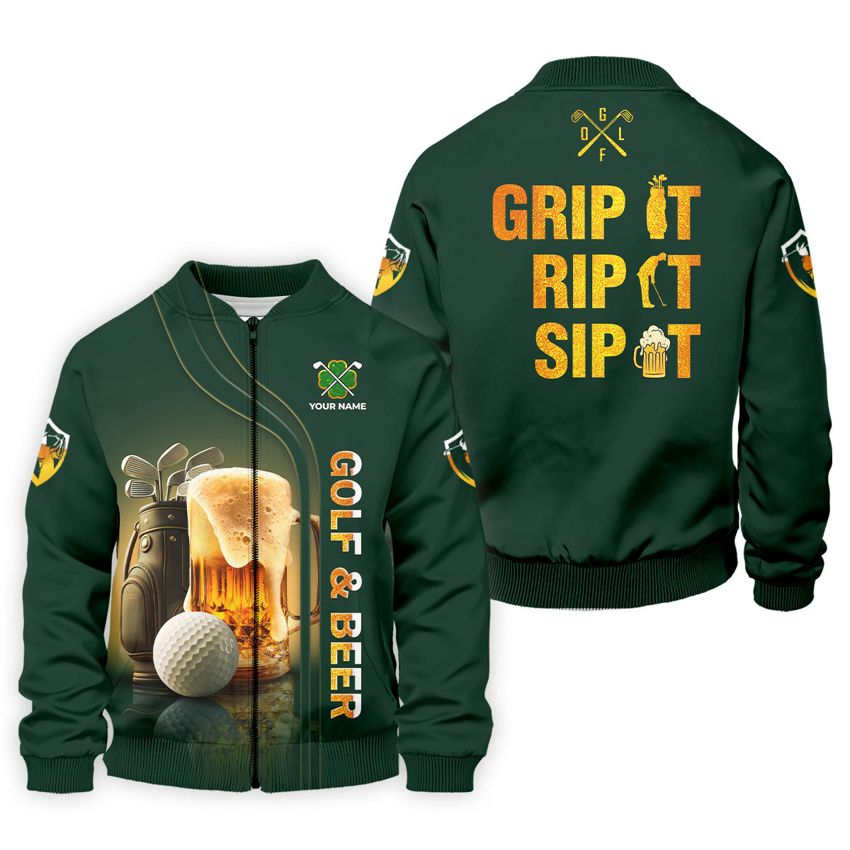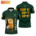 Grip It Rip It Sip It Golf And Beer St Patrick's Day Green Golf Shirts For Men, Golf Gift For Men