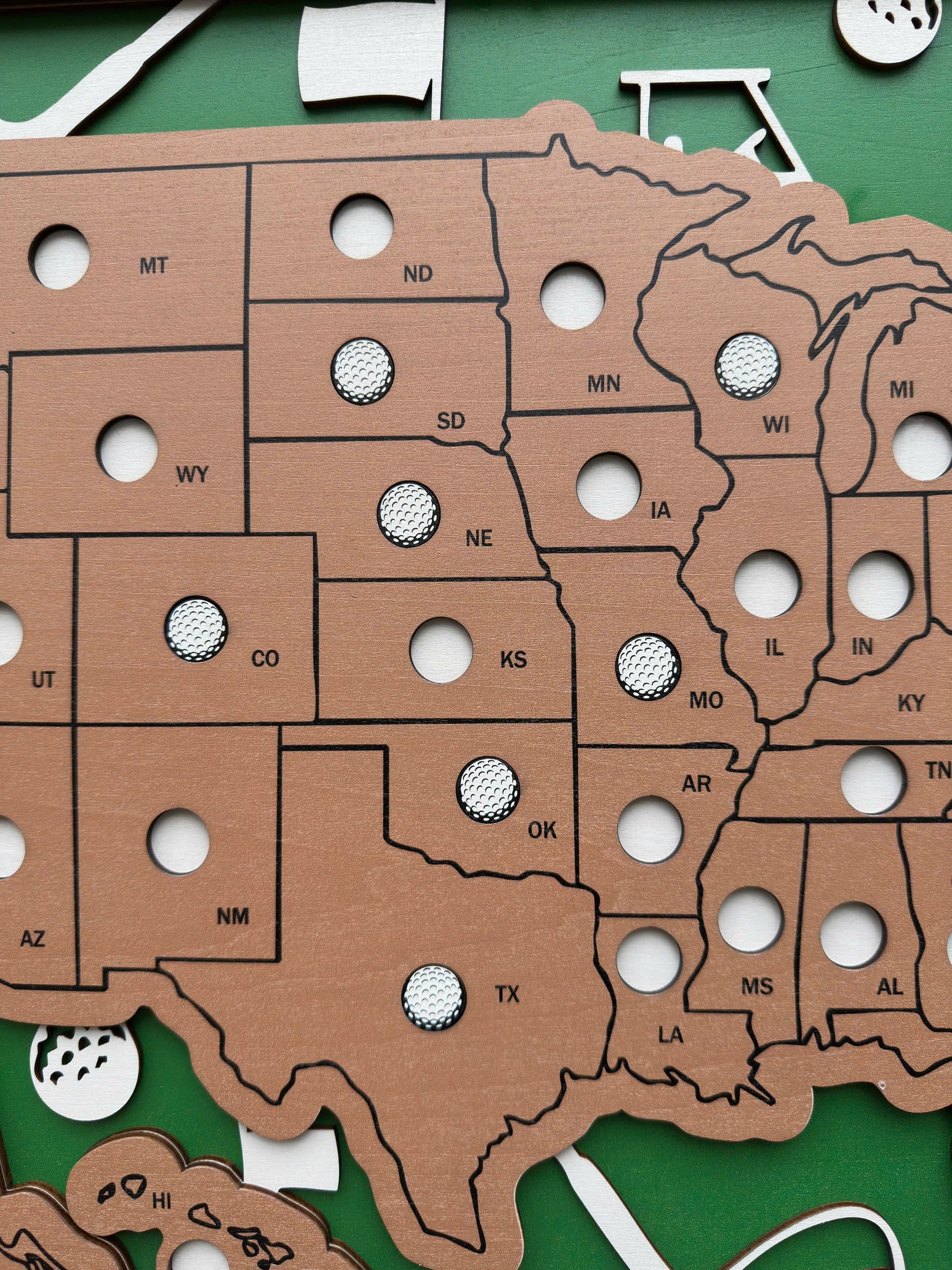 With our custom engraved badge, your wood map becomes a storyteller, weaving the tale of your golf journey across the America. From the first tee to that satisfying putt on the 18th green, you’ve earned the right to brag – now let your map do the talking!