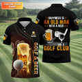 Happiness Is An Old Man With A Beer And A Golf Club Custom Funny Golf Polo Shirt, Dad Golf Gifts