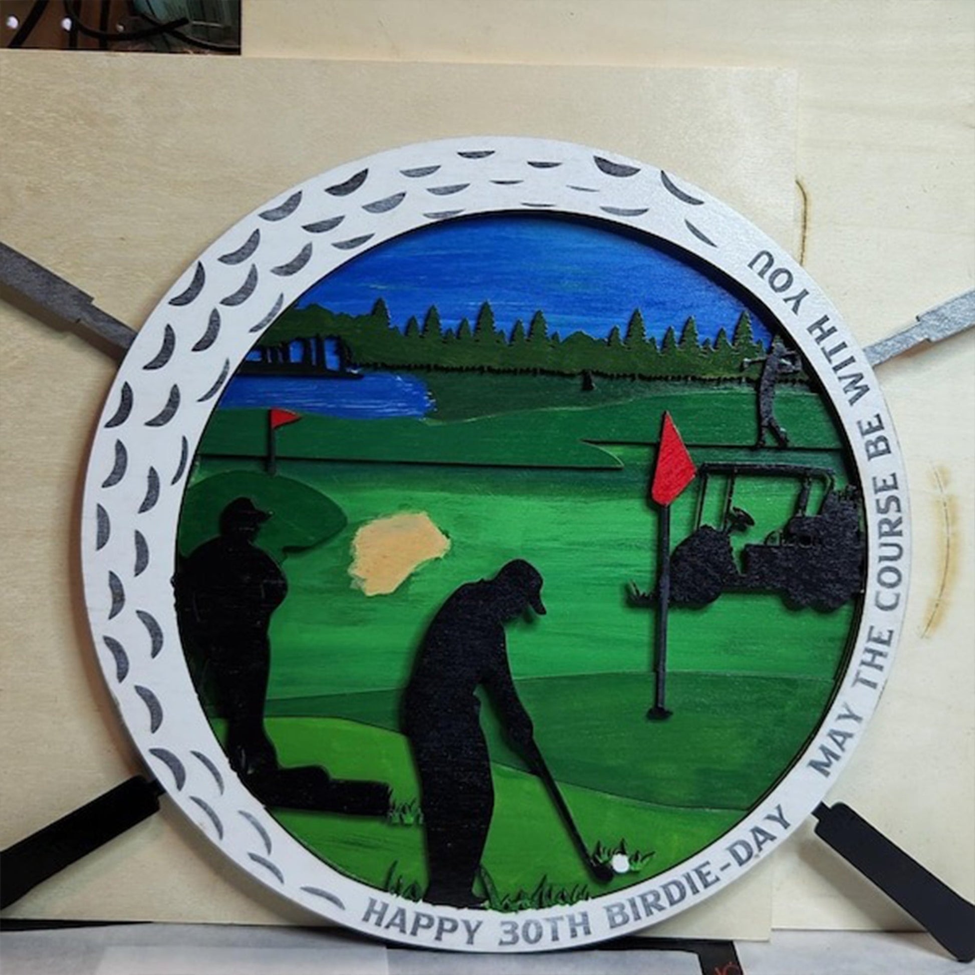 Happy Birdie Day Golf Ball Art, Custom Golf Wood Sign, Gift For Golfers