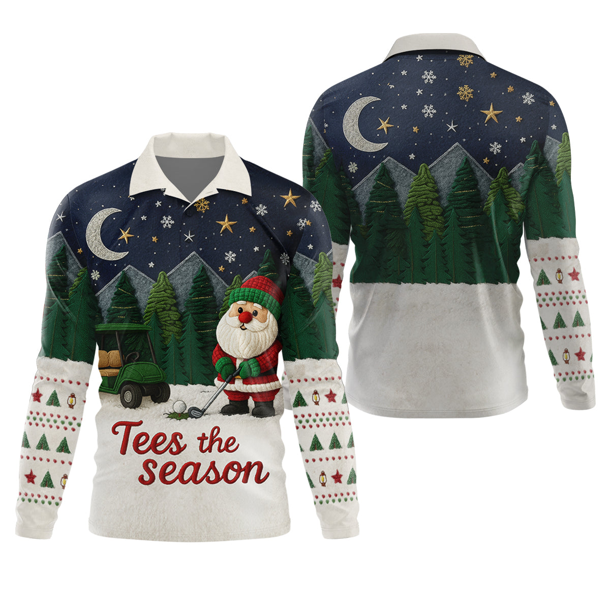 Santa Golfing Tees The Season Night Theme Golf Tops For Men, Christmas Golf Shirt, Polo Shirts For Men