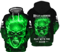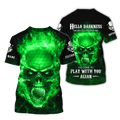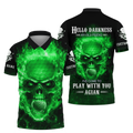 Hello Darkness My Old Green Blue Flame Skull Golf Polo Shirt, Golf Apparel, Golf Gift For Men