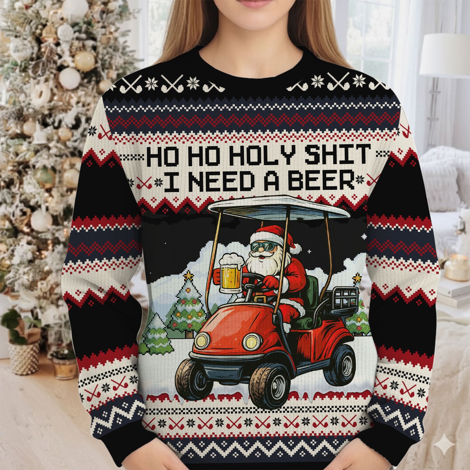Ho Ho Ho I Need A Beer Christmas Ugly Sweater, Golf Ugly Christmas Sweater, Christmas Golf Shirt