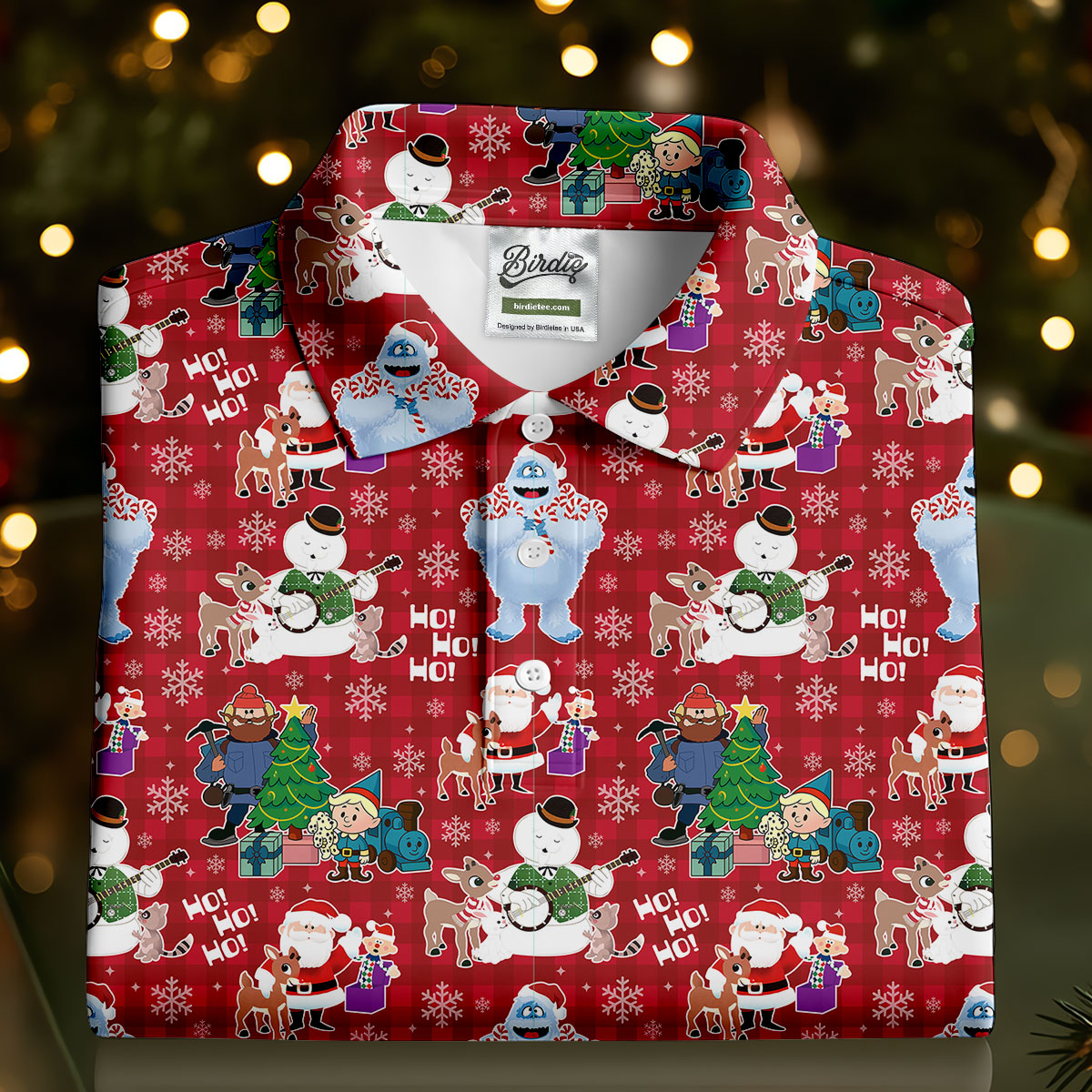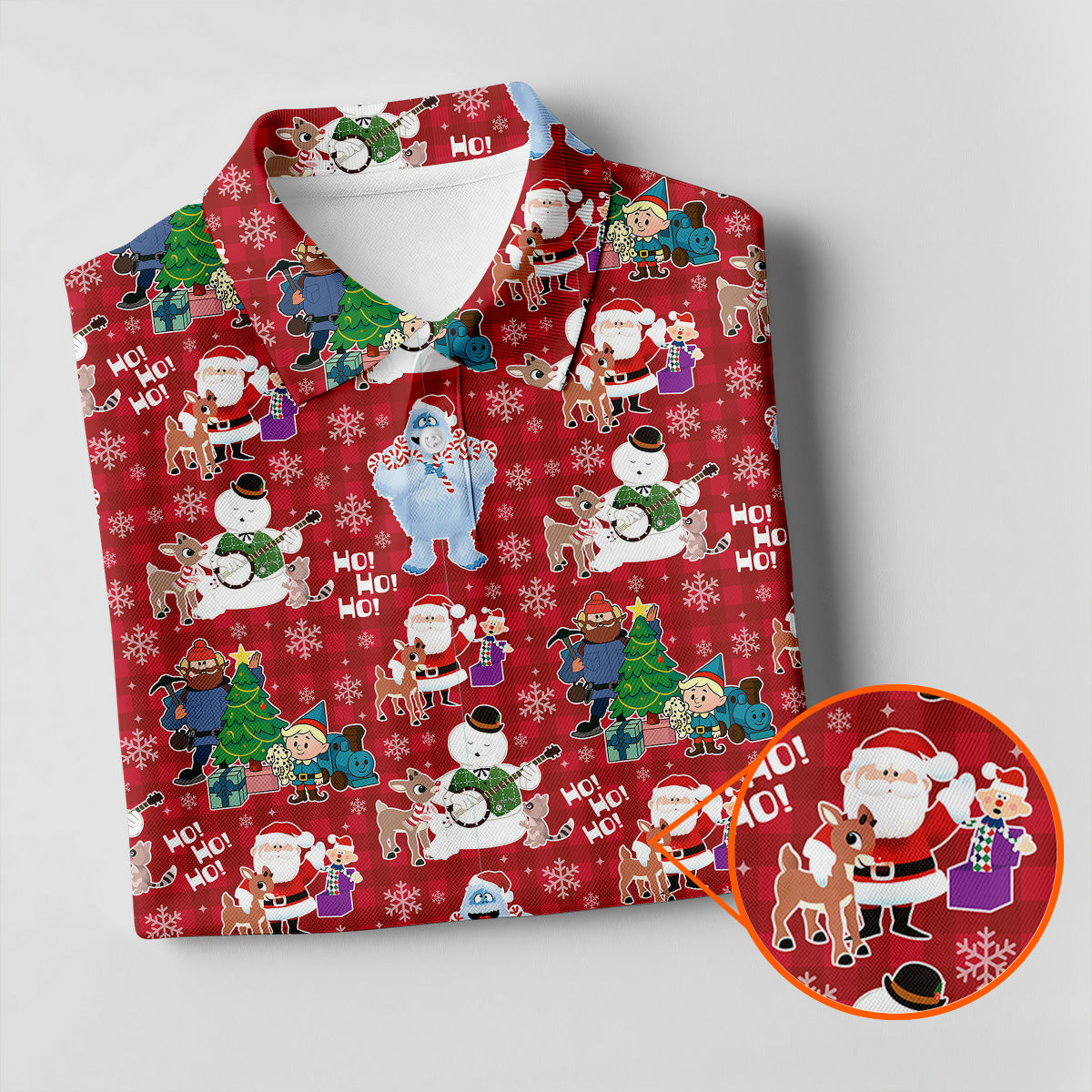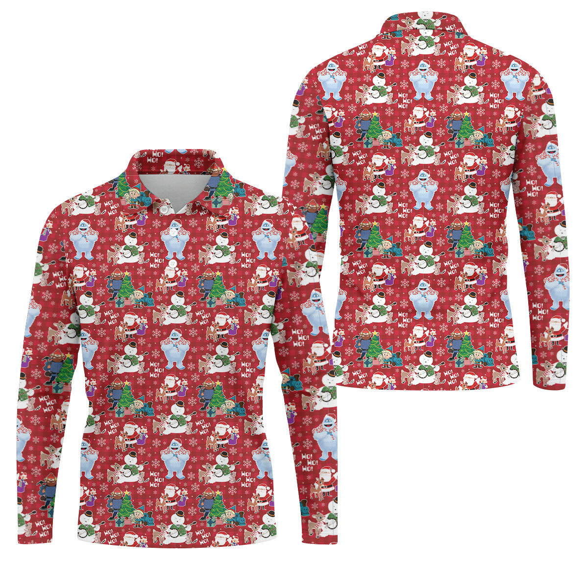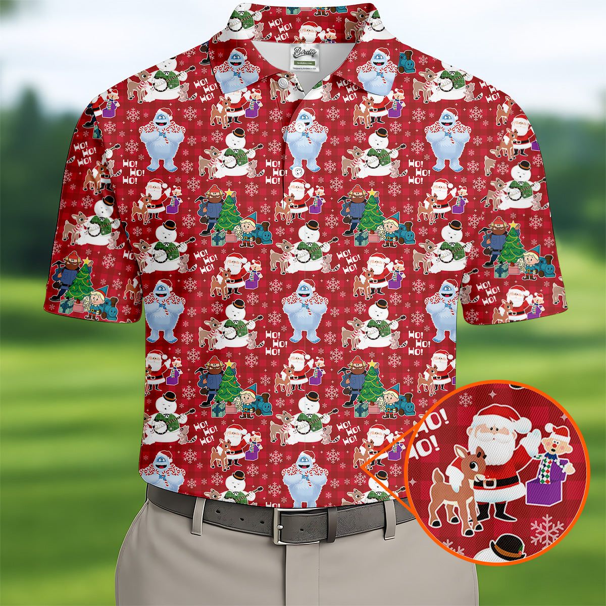 Ho Ho Ho Santa Snowman Men's Golf Polo Shirts, Christmas Golf Shirt, Polo Shirts For Men